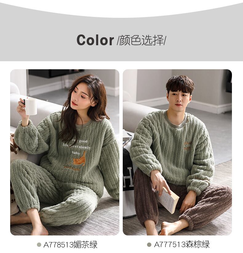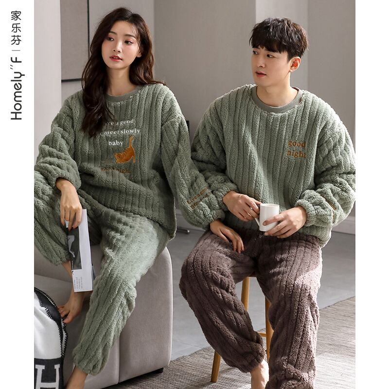 カップルパジャマメンズウィンターフランネルシックニングプラスベルベットコーラルフリース秋冬ホームウェアレディースウィンタースーツ jial92536545159