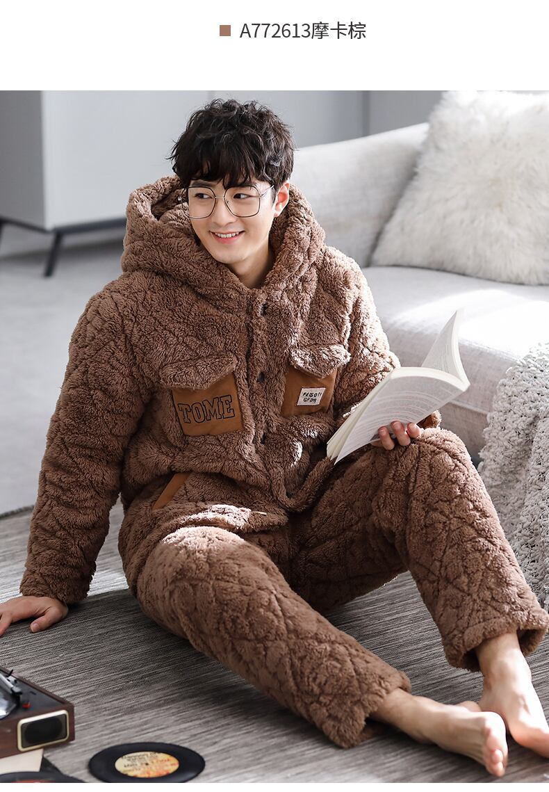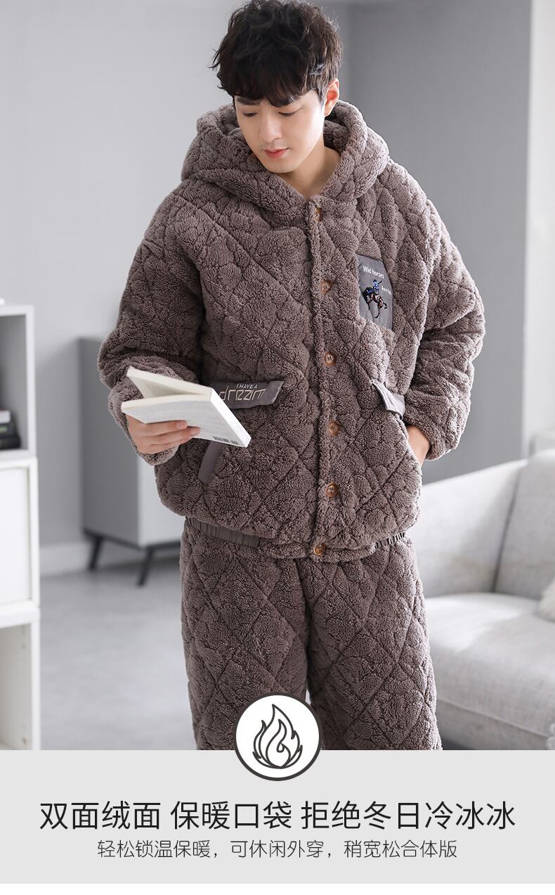 パジャマメンズ冬冬コーラルフリースフランネルキルティングジャケット3層厚手超厚手プラスベルベット暖かい秋と冬 jial85950882683