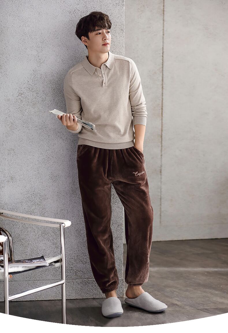 パジャマパンツ、メンズホームパンツ、コーラルベルベットパンツ、秋冬ウォームパンツ、フランネルプラスベルベットシック、ラージサイズは屋外で着用可能 jial72667959989