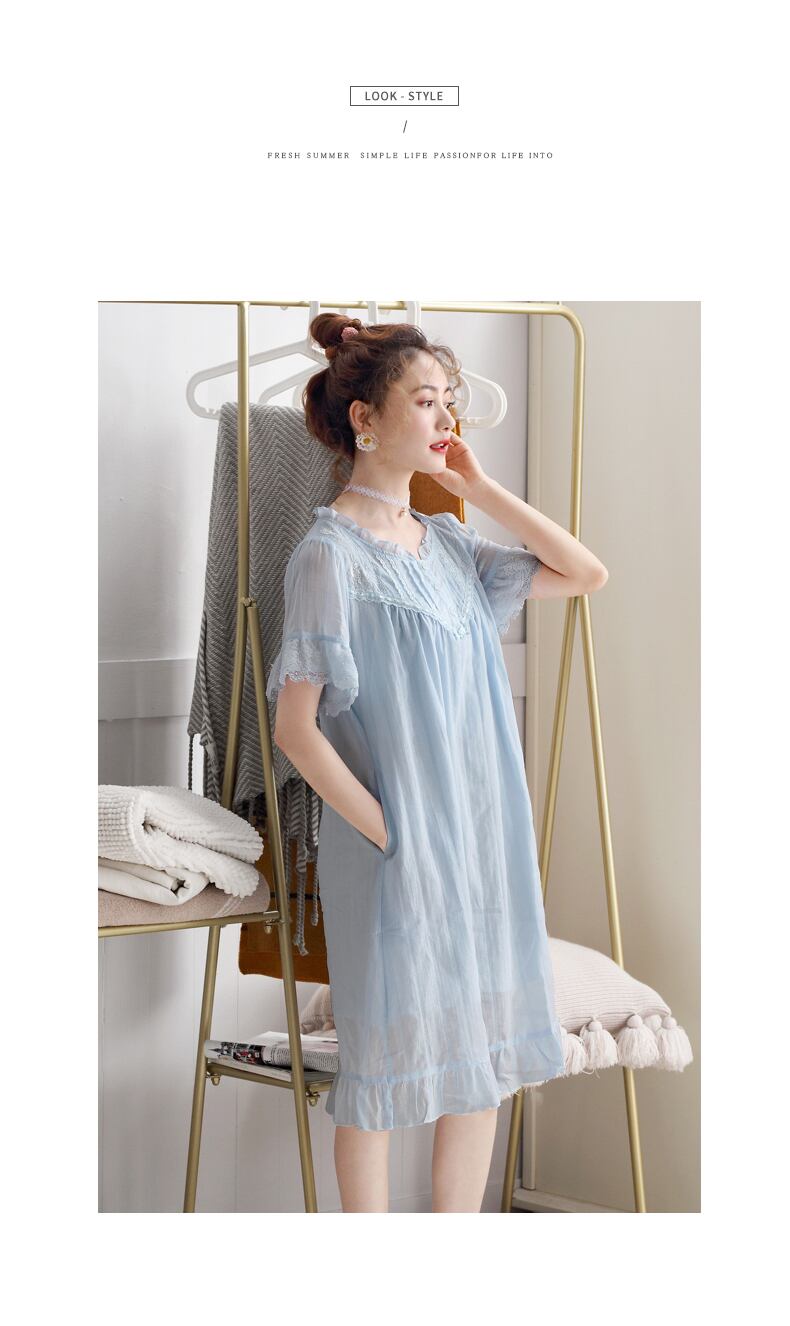 夏のネグリジェパジャマ夏の薄手の半袖ミドル丈スカート純綿綿織綿糸ルースプラスサイズ jial84437674250