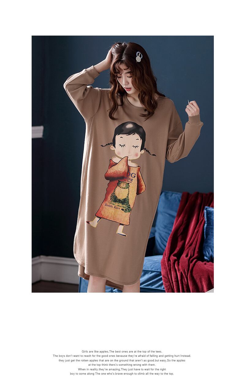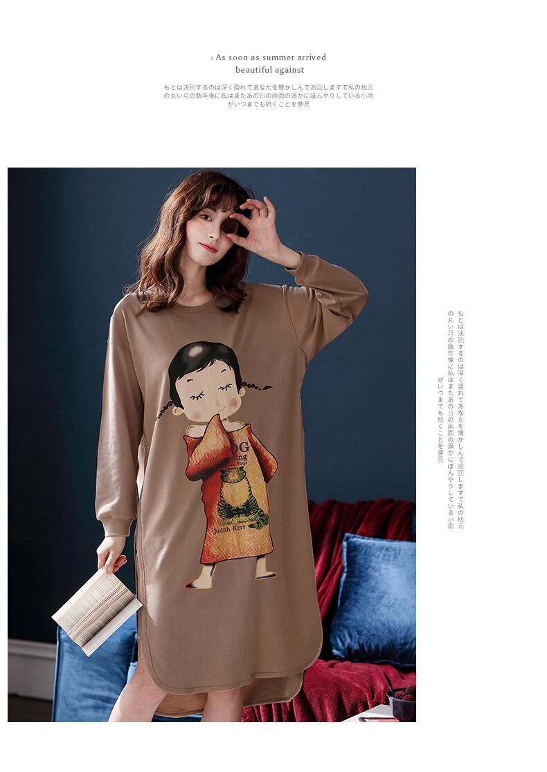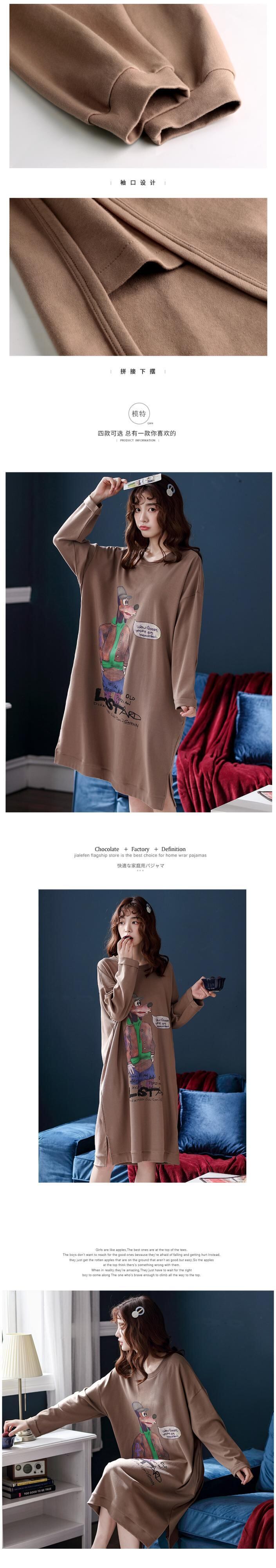 春と秋のネグリジェレディースパジャマ長袖コットンホームウェア夏薄片コットンロングセクションはカジュアルバージョンを出かけることができます jial34953329852