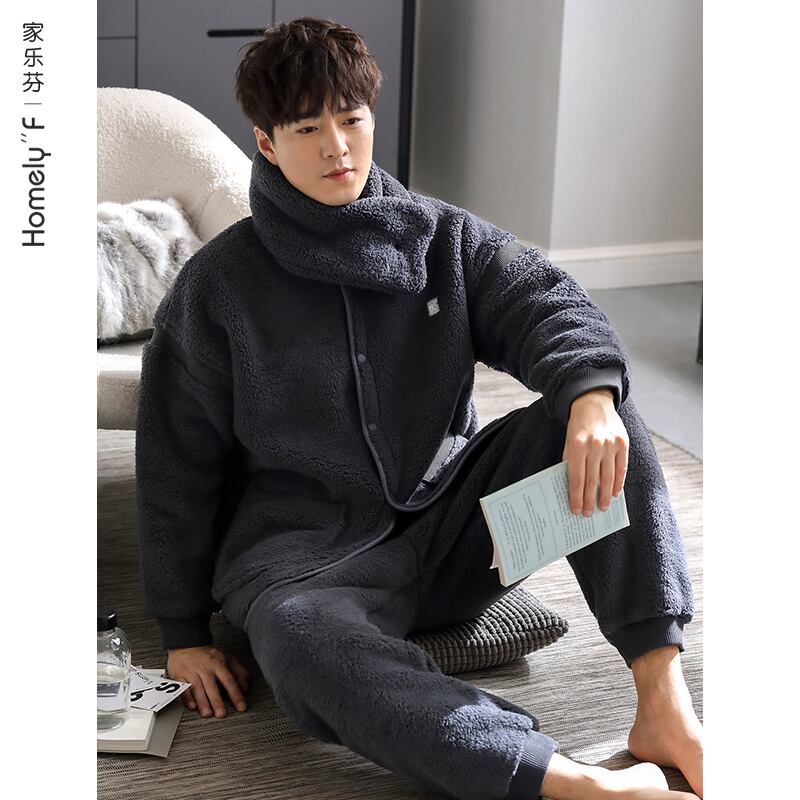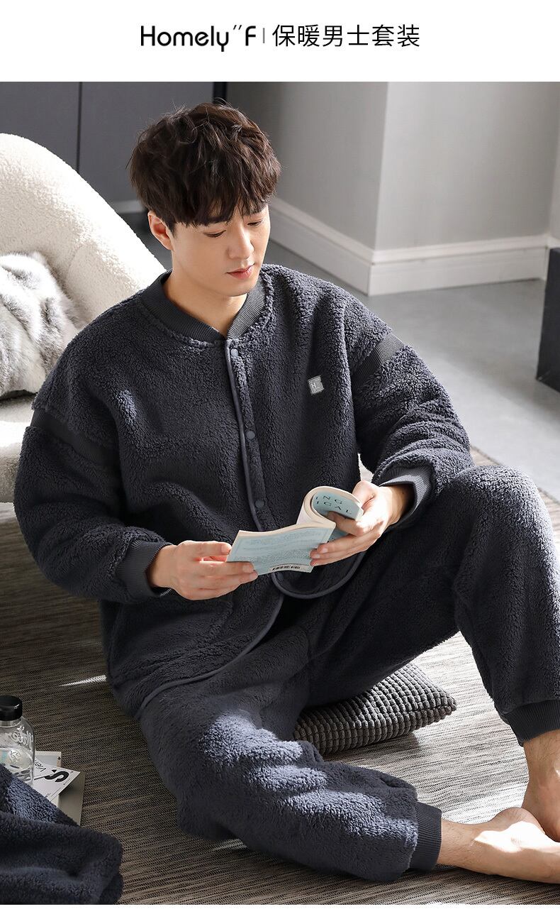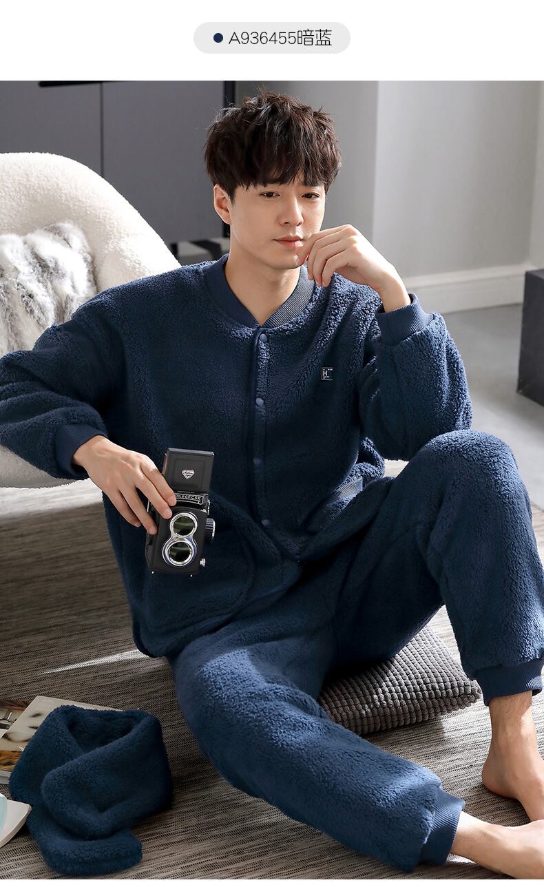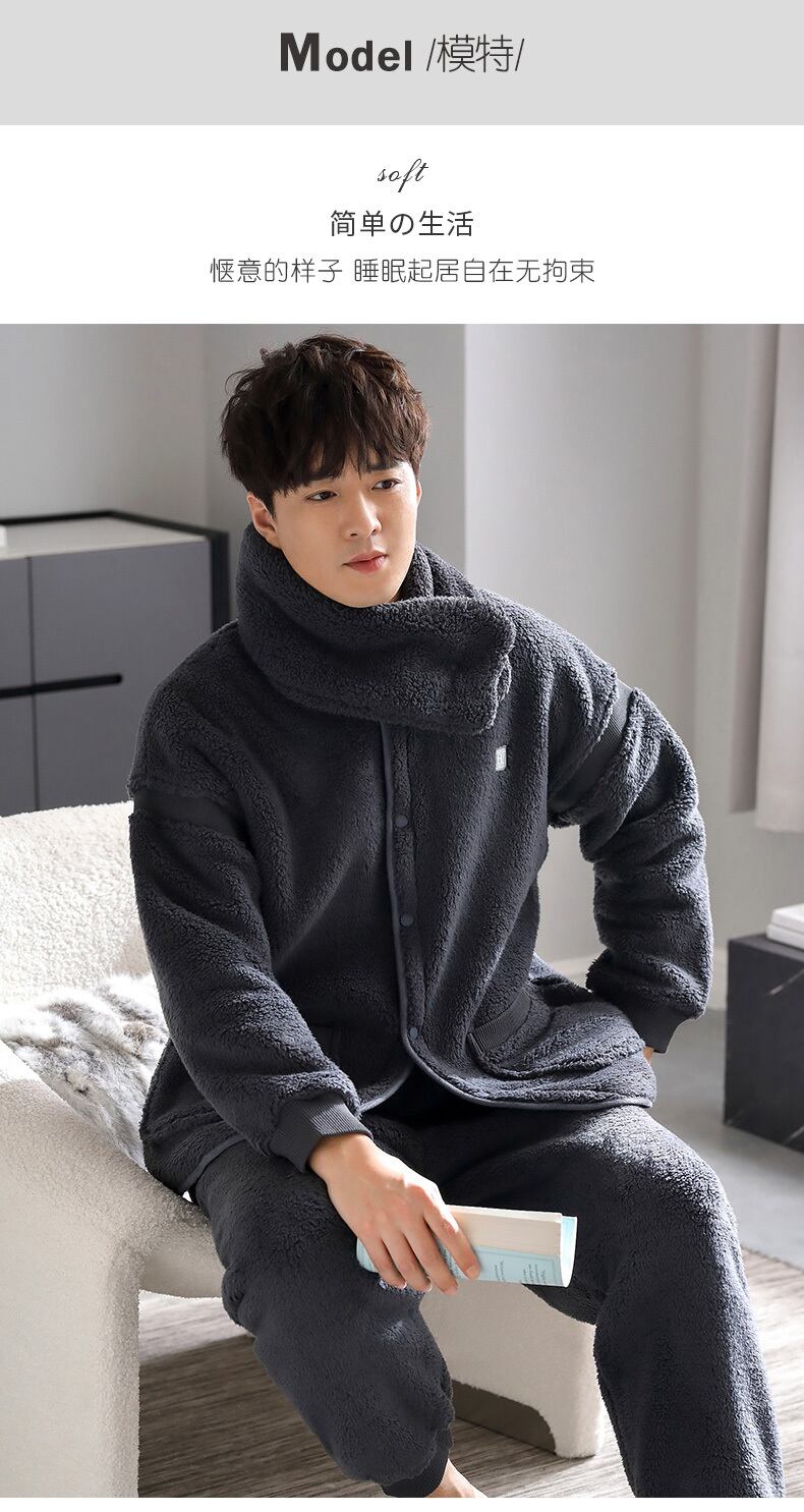 パジャマメンズウィンターフランネルシックニングとベルベットコーラルフリースホームウェアメンズラージサイズ秋冬スーツ jial58250311304