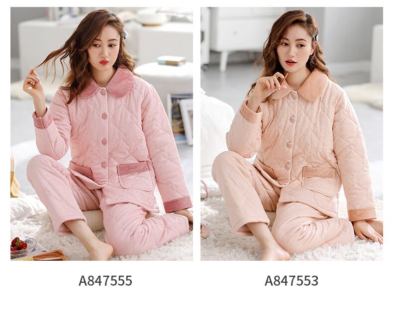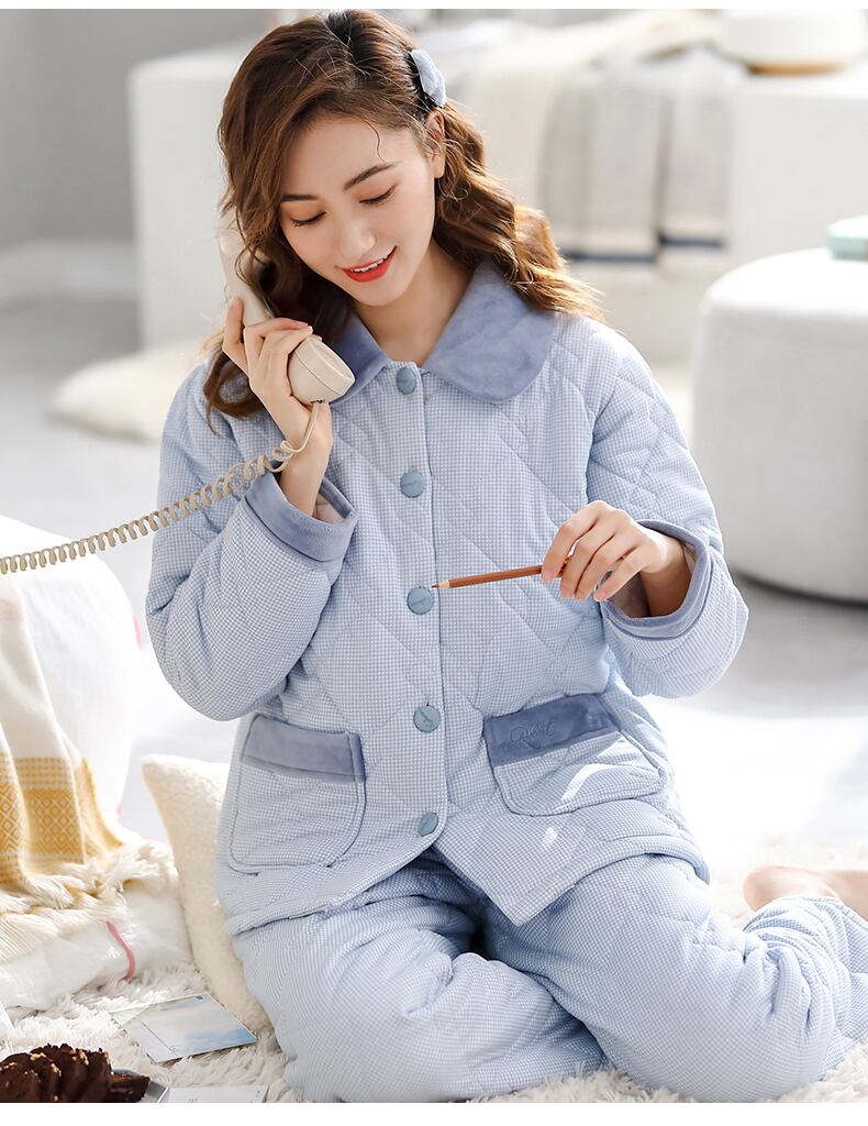 パジャマレディース冬3層厚手の綿キルティング秋と冬の家庭服と綿の暖かい綿のスーツ jial94976087938