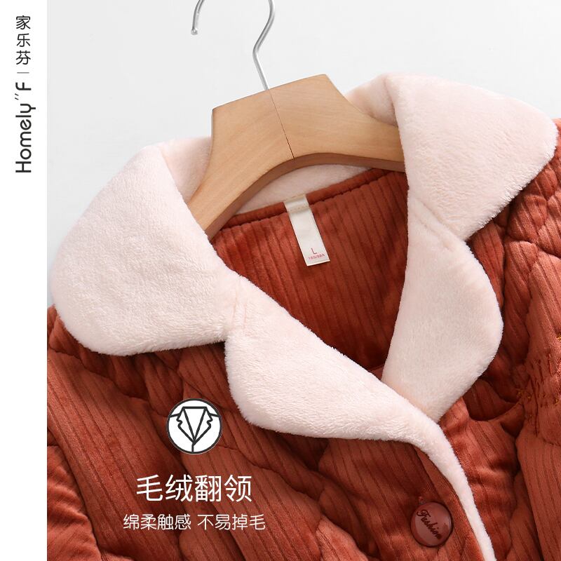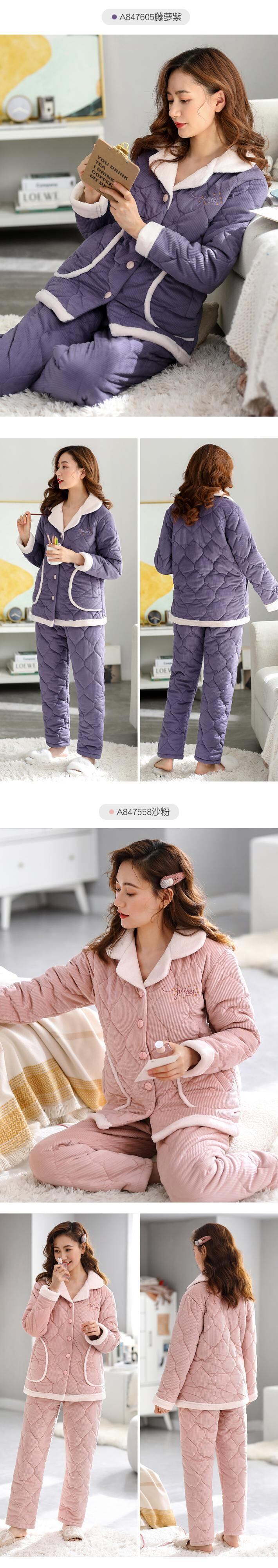 パジャマの女性の冬の3層の厚くされた超厚いコーラルフリースとベルベットのフランネルのキルティングジャケット冬の秋と冬の家庭服 jial81197959372