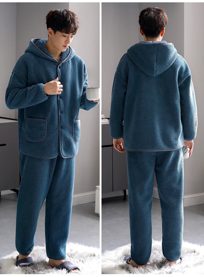 パジャマメンズ冬フランネル厚手プラスベルベットコーラルフリース家庭服冬秋冬ユーススーツ jial46091567395