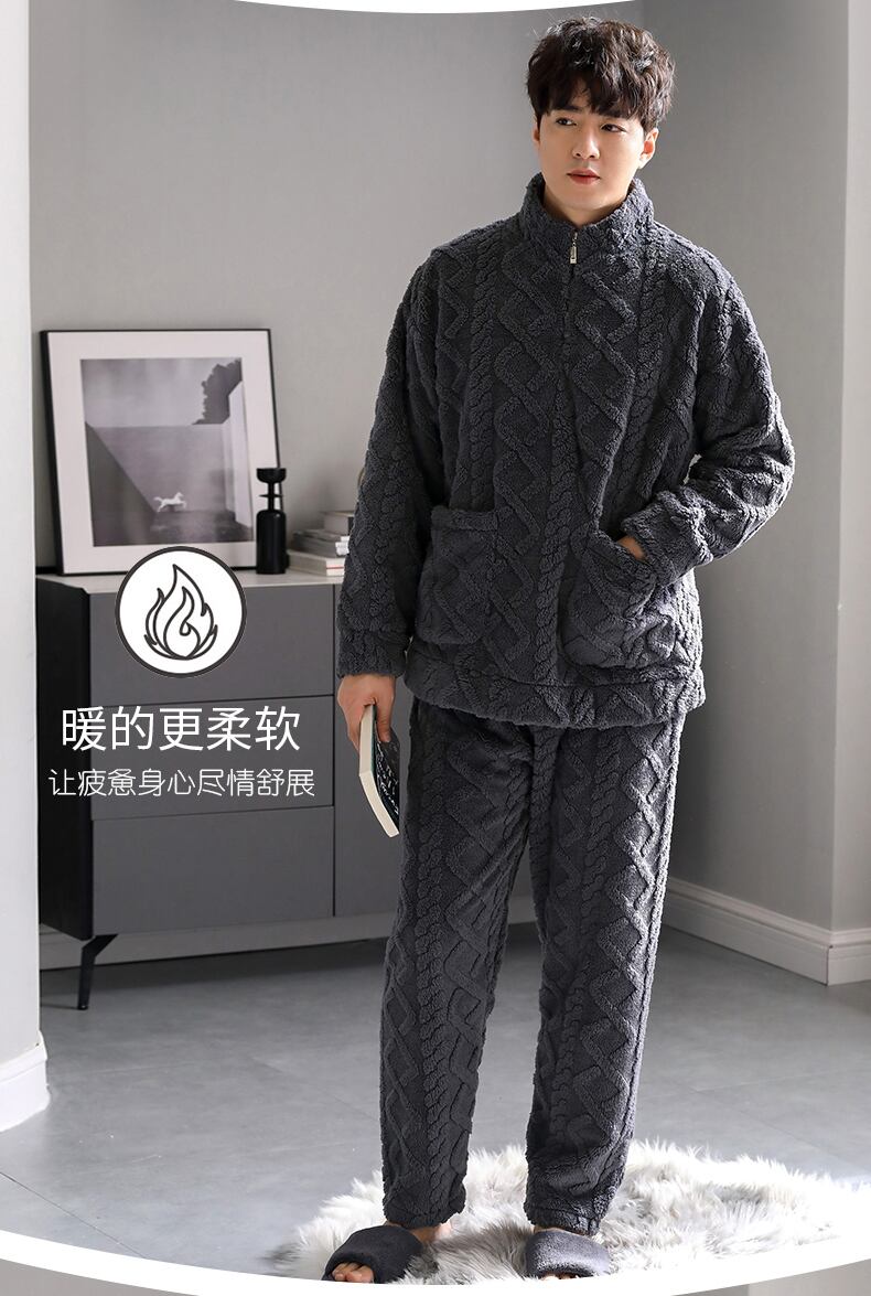 パジャマメンズ冬フランネル増粘とベルベットコーラルフリース秋冬モデル冬の家庭服男性はスーツを着ることができます jial56827968369