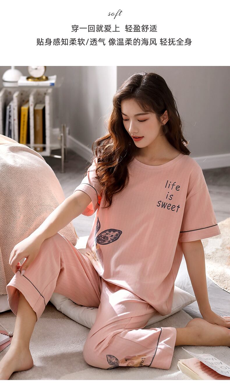 パジャマレディースサマーコットン半袖パンツホームウェアサマーシンカジュアル着用可能ツーピーススーツ jial97003687233