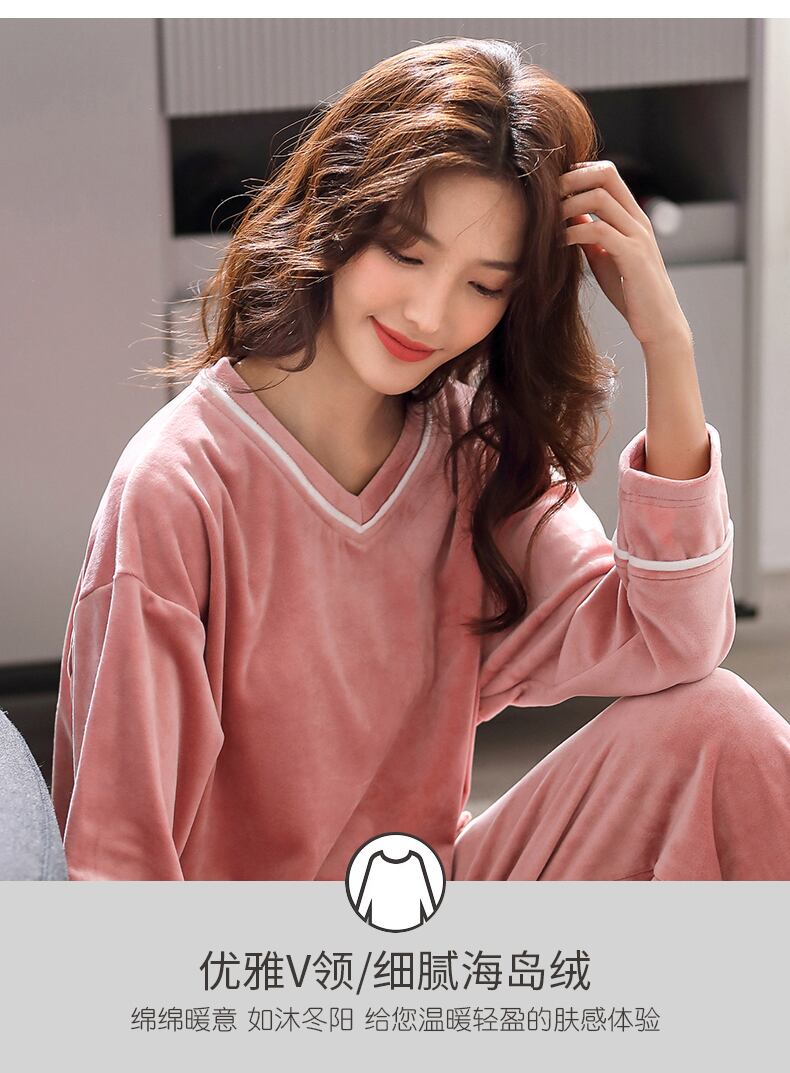 パジャマレディース春・秋サンゴフリースフランネル厚みのあるベルベット秋冬薄手の家庭服カジュアルは外で着ることができます jial75666624223
