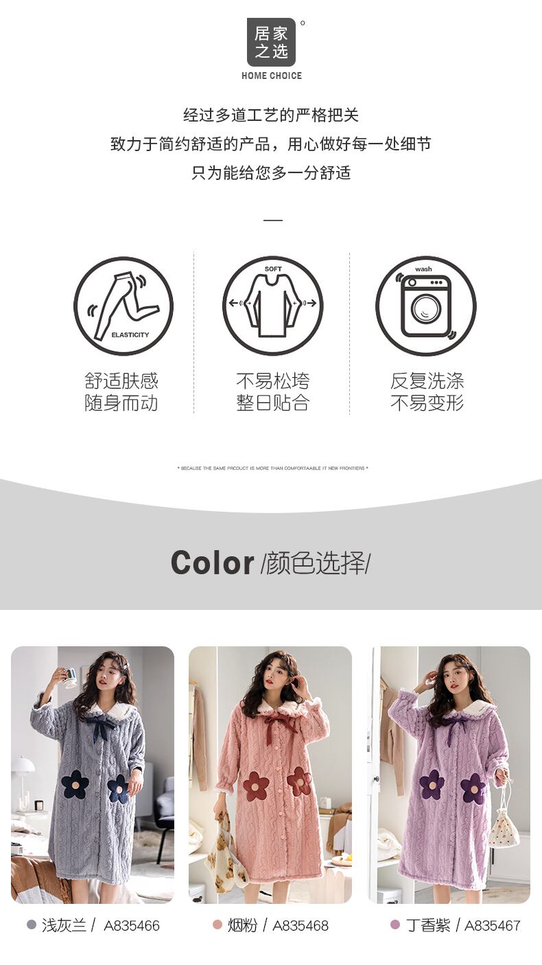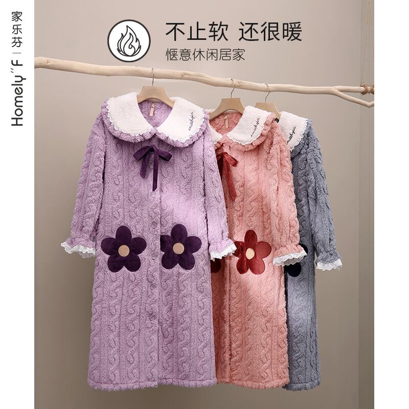 パジャマ、レディースパジャマ、バスローブ、秋冬、ロングフランネル、厚みのあるベルベット、コーラルフリース、家庭用品、冬 jial13503935323