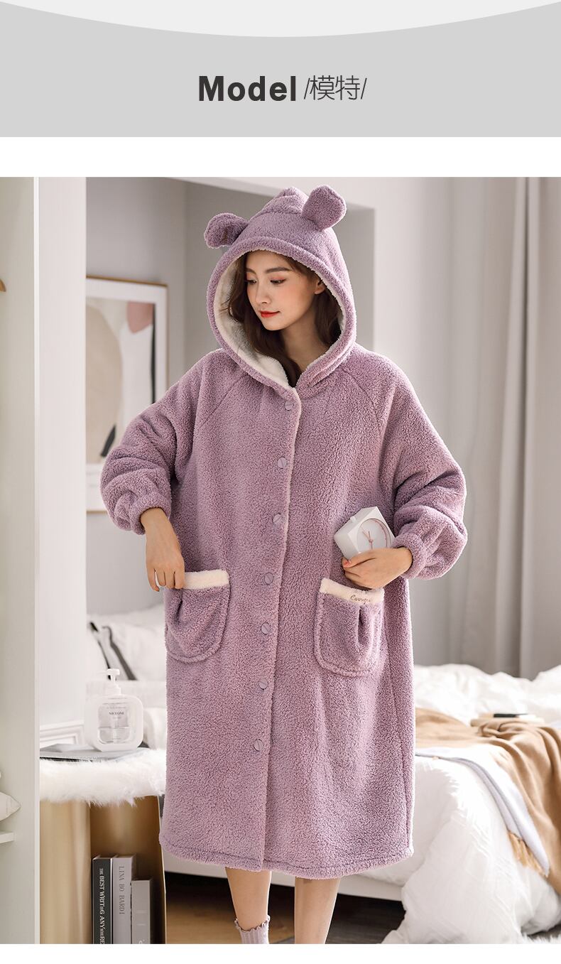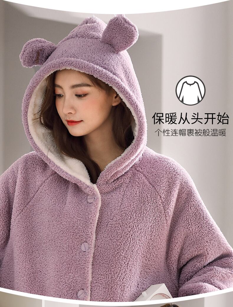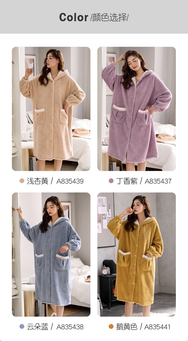 パジャマ、レディースパジャマ、バスローブ、秋冬、ロングフランネル、厚みのあるベルベット、コーラルフリース、家庭用品、冬 jial32753501225