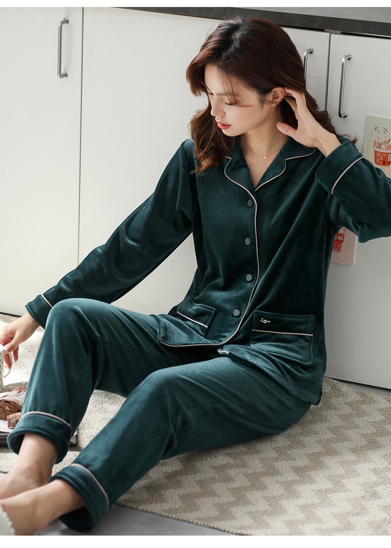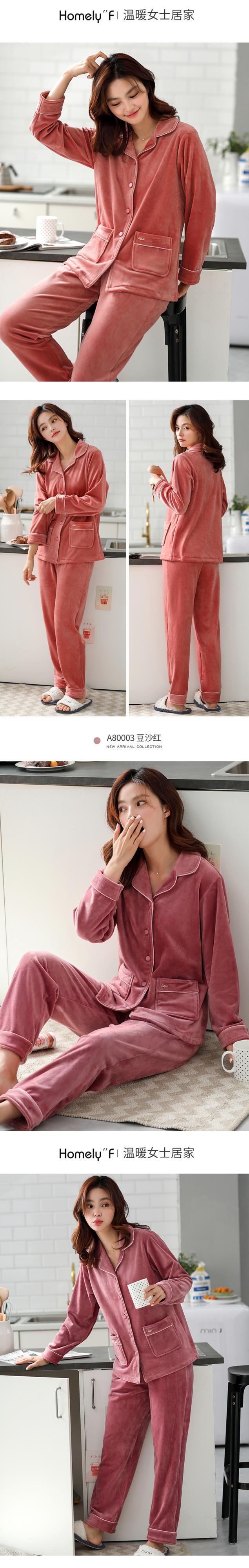 アイランドベルベットパジャマ女性の春と秋の厚みとベルベットコーラルフリースフランネル家庭服秋と冬の薄いスーツ jial38505308790