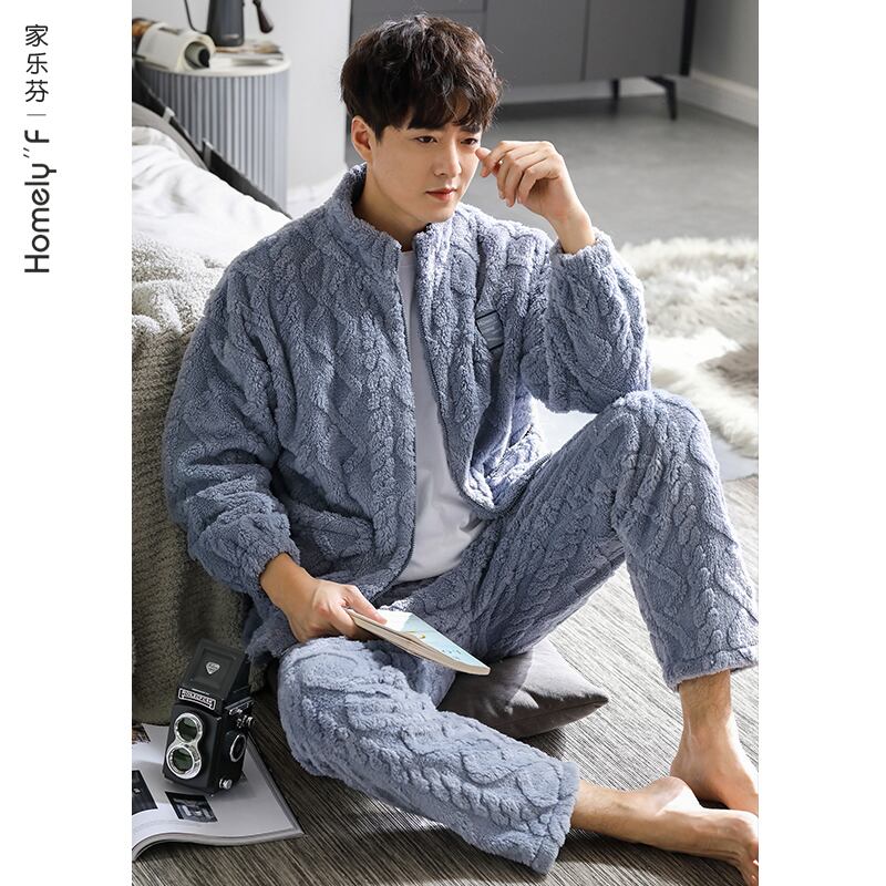 パジャマメンズ冬フランネル増粘とベルベットコーラルフリース秋冬モデル冬の家庭服男性はスーツを着ることができます jial54690655577