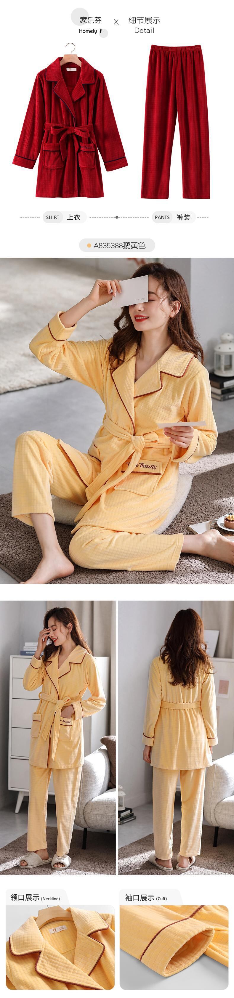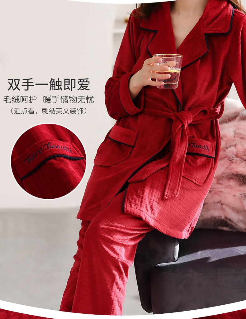 パジャマレディースナイトガウンスーツ長い冬秋と冬コーラルベルベット厚くプラスベルベットフランネルアイランドベルベット家庭服 jial26371332409
