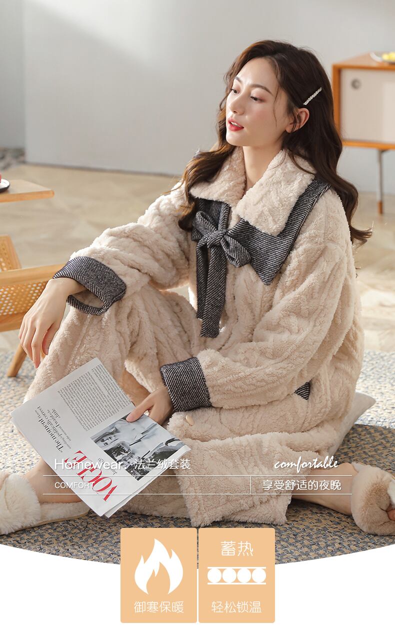 パジャマ秋冬コーラルフリースシックニングとフランネルフランネルホームウェア冬ミドル丈レディーススーツ jial80313113290