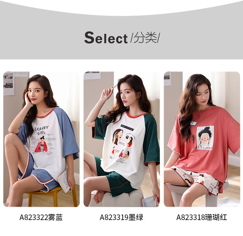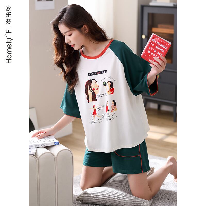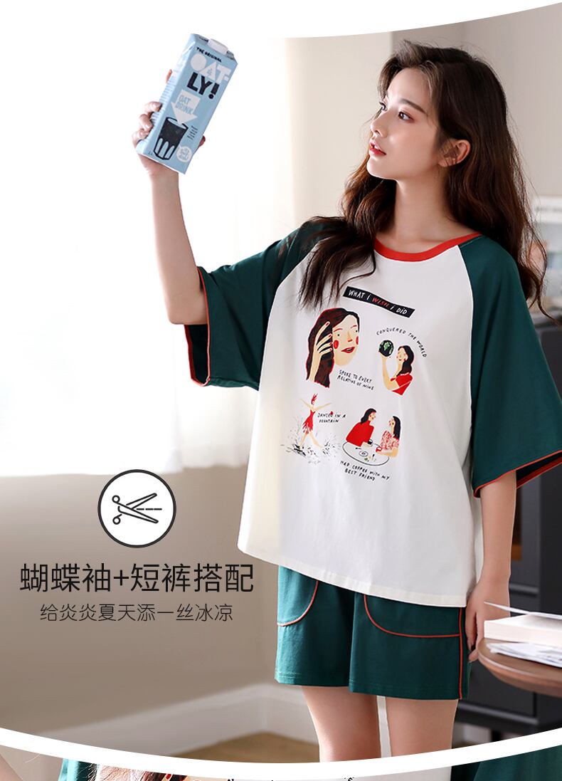 パジャマサマーコットン半袖ショーツホームウェアサマーシンコットンアウターウェアルーズラージサイズ jial96049890511