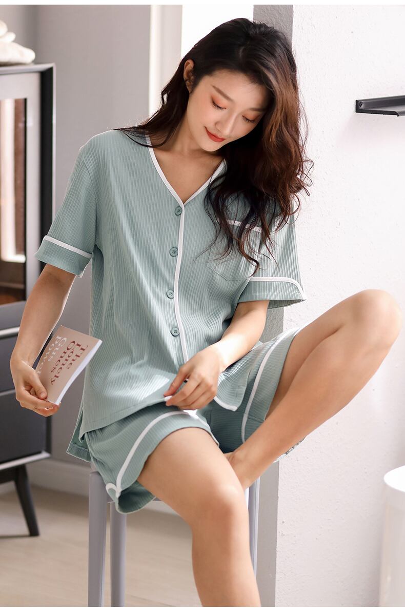 2021パジャマサマーコットン半袖ショーツホームウェアサマーシンラージサイズツーピーススーツ jial44347503314