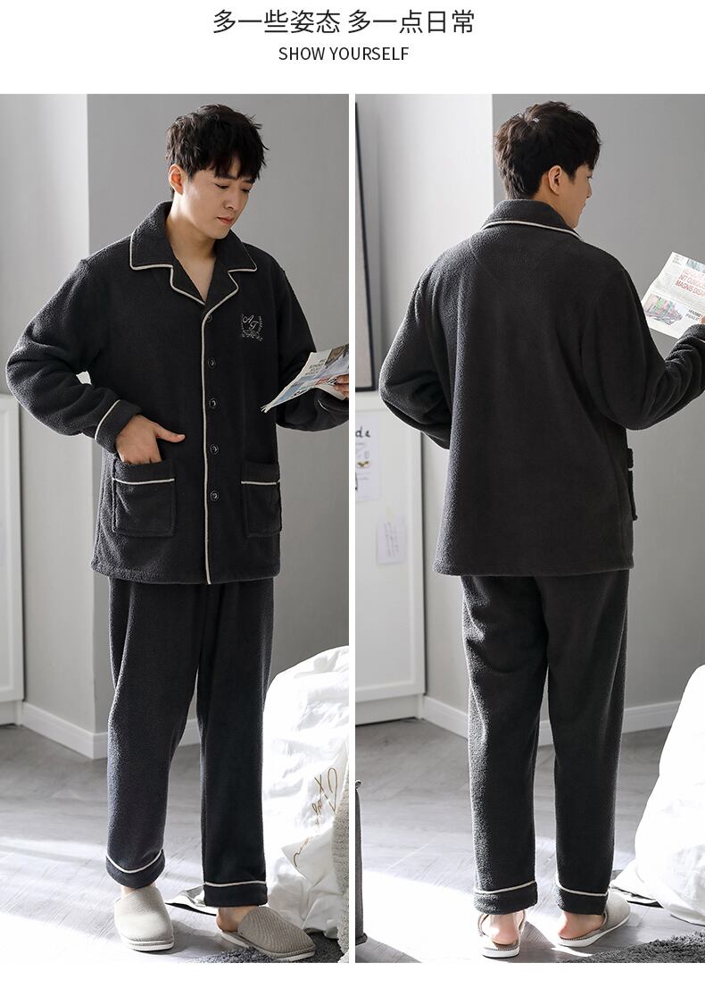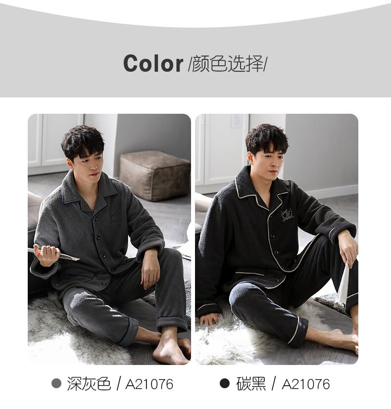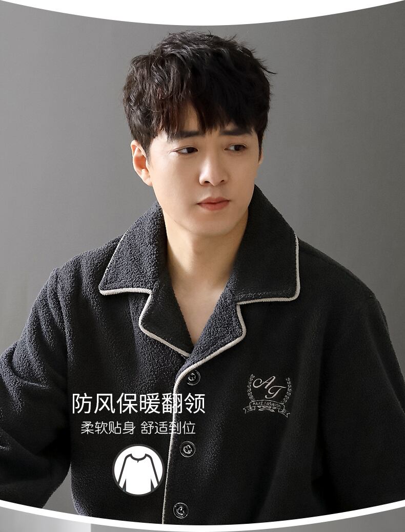 Carrefineパジャマメンズ秋冬モデル冬フランネル厚手プラスベルベットコーラルフリース家庭服メンズスーツ jial52003957847
