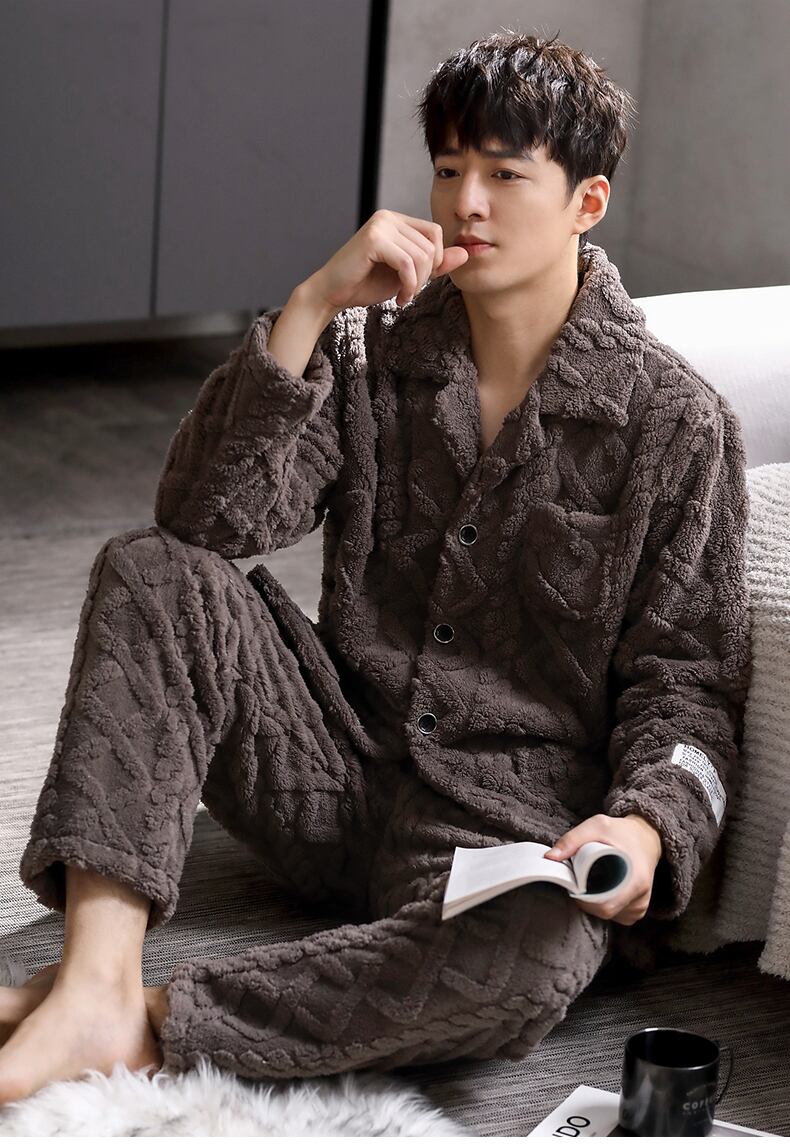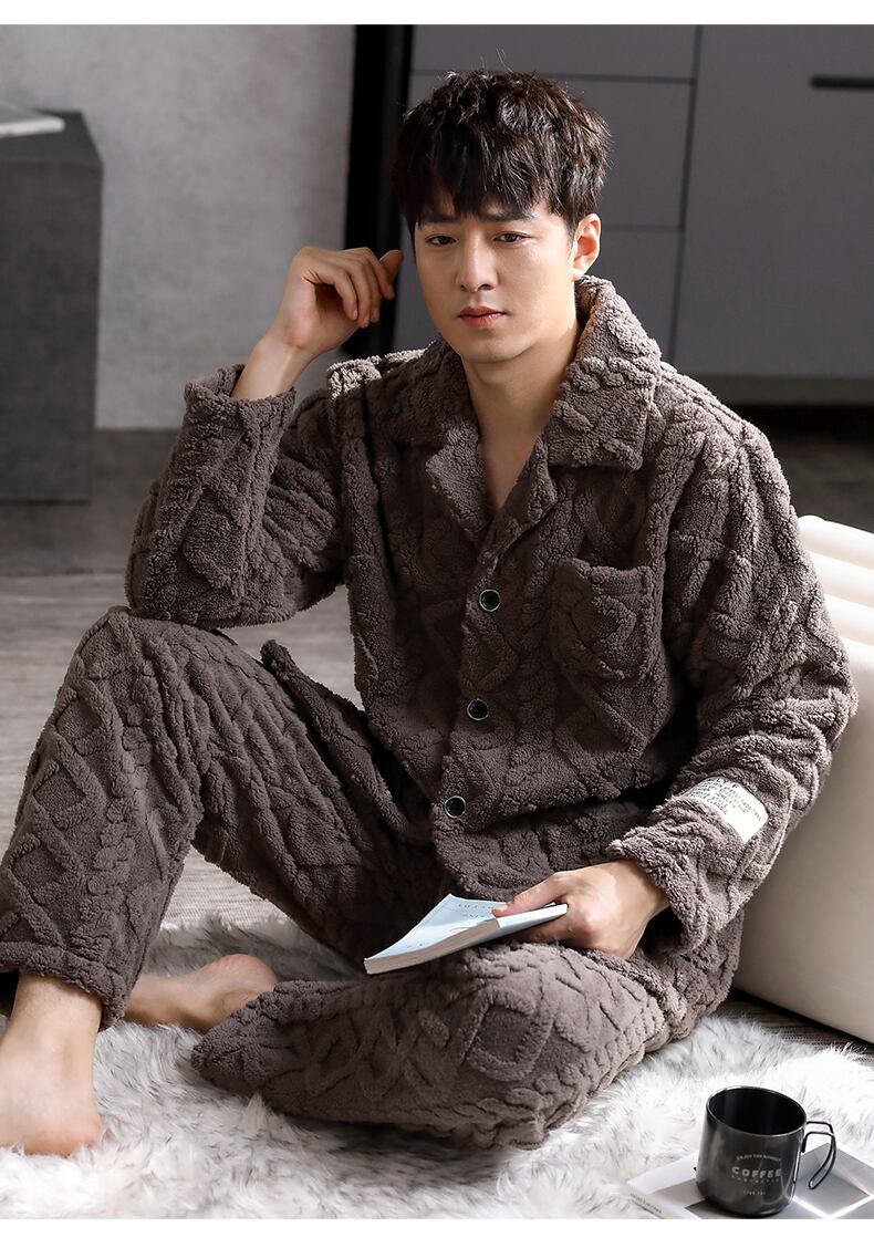 パジャマメンズ秋冬フランネルシックニングとフリースコーラルフリースホームウェアメンズ冬ラージサイズスーツ jial58216676620