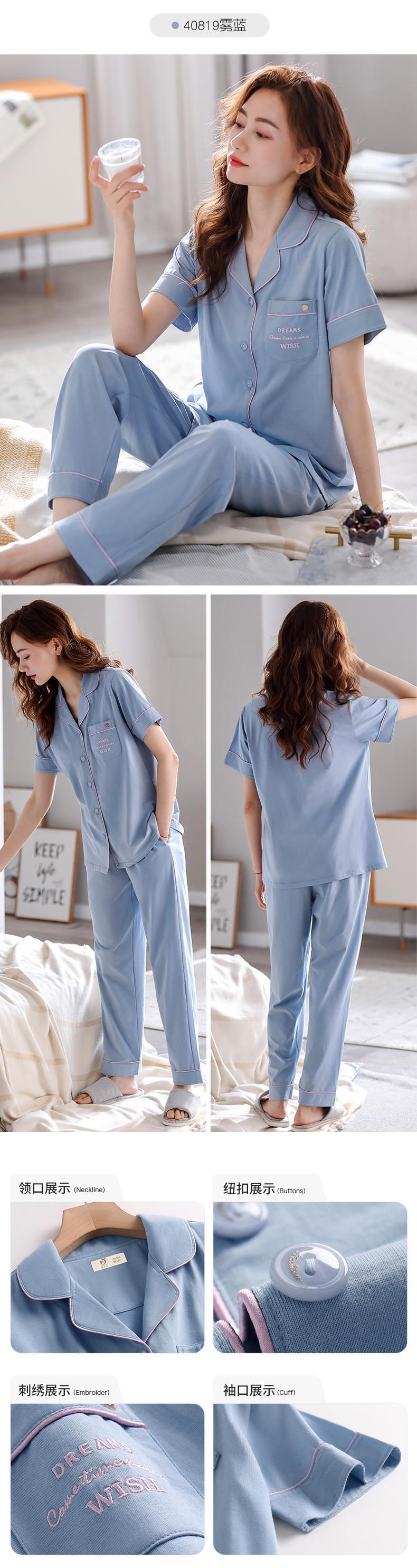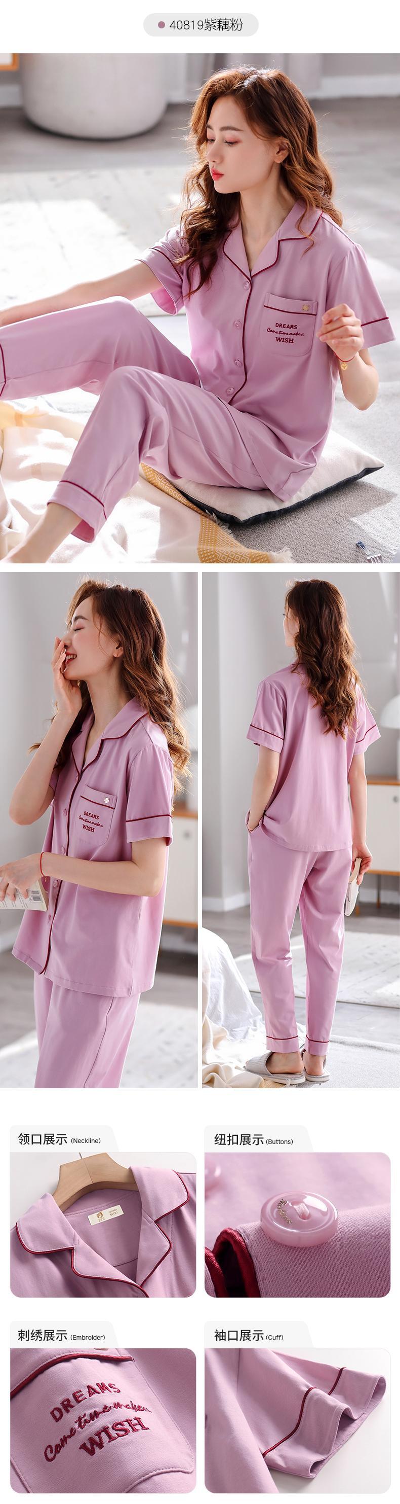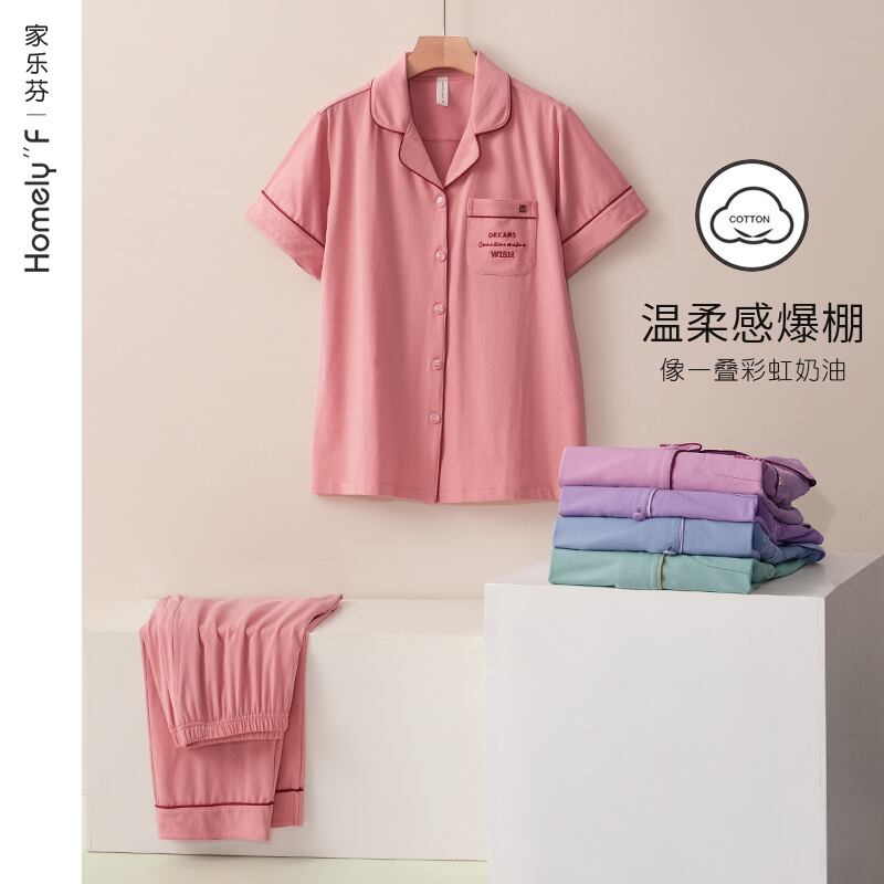 Carrefineパジャマレディースサマーコットン半袖パンツホームウェアサマーシンコットンカーディガンツーピーススーツ jial75993371747
