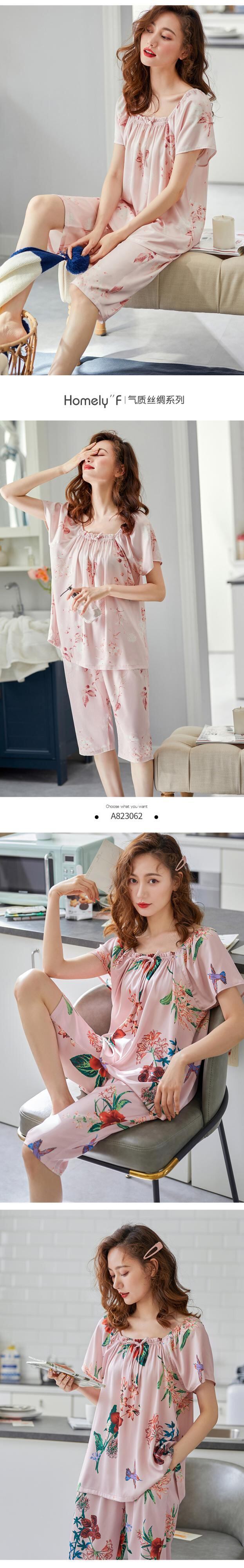 パジャマレディース夏シルクアイスシルク半袖ショーツ家庭服夏薄切り中年マザーシミュレーションシルクスーツ jial39276955914