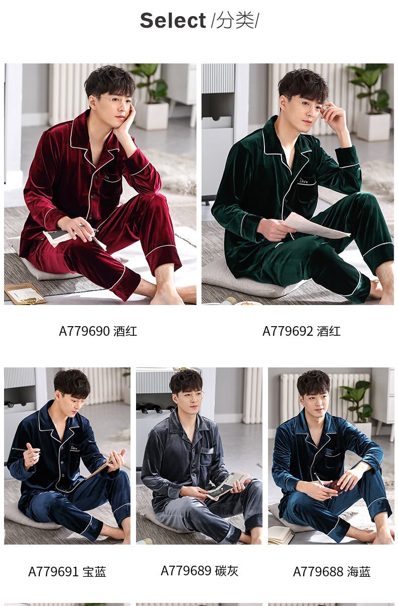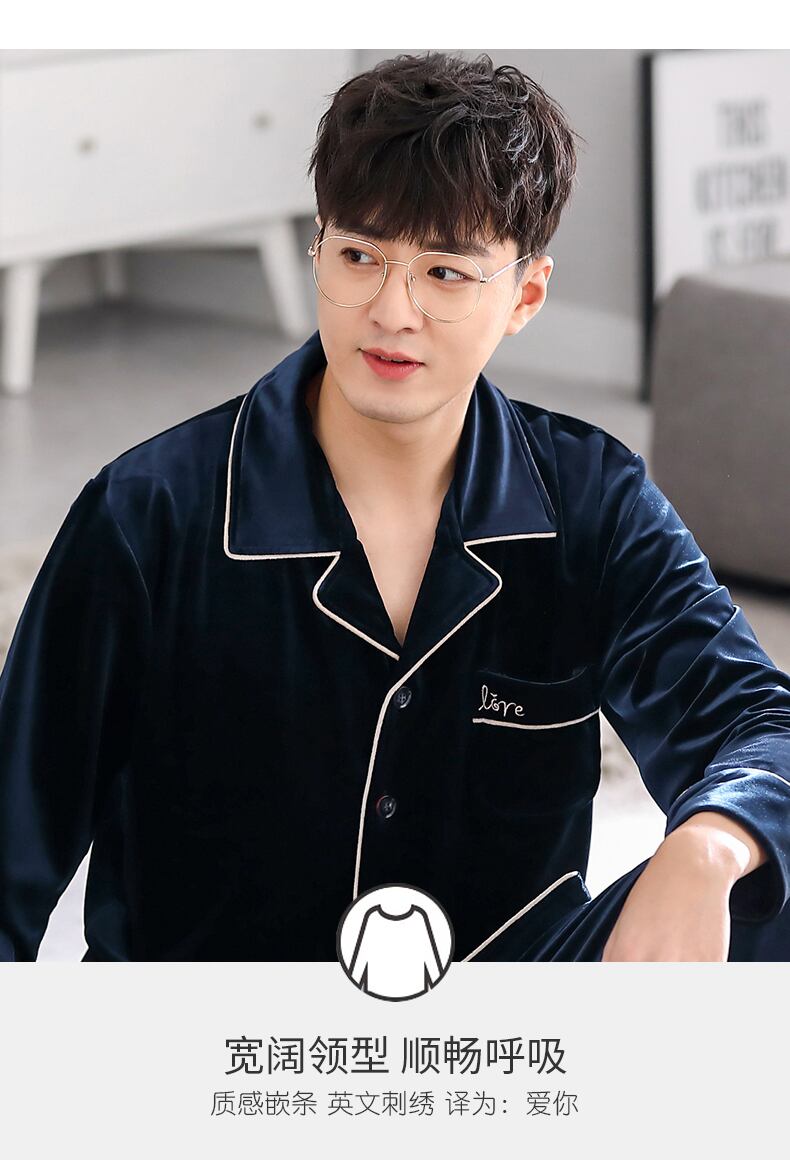 Carrefineパジャマメンズ春秋ゴールドベルベット長袖ラウンジウェアメンズ秋冬薄冬メンズスーツ jial4850640042