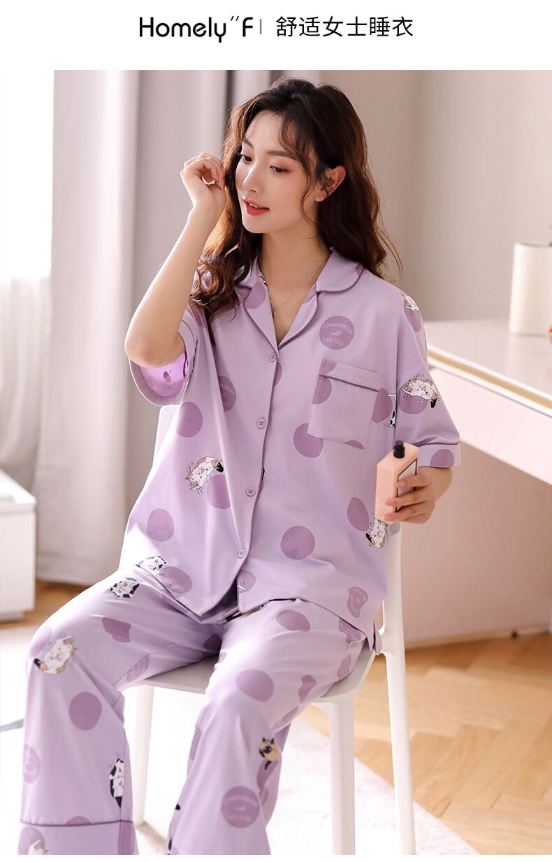 パジャマレディースサマーコットン半袖パンツサマーシンコットン2021ニューホームウェアツーピーススーツ jial77307860254