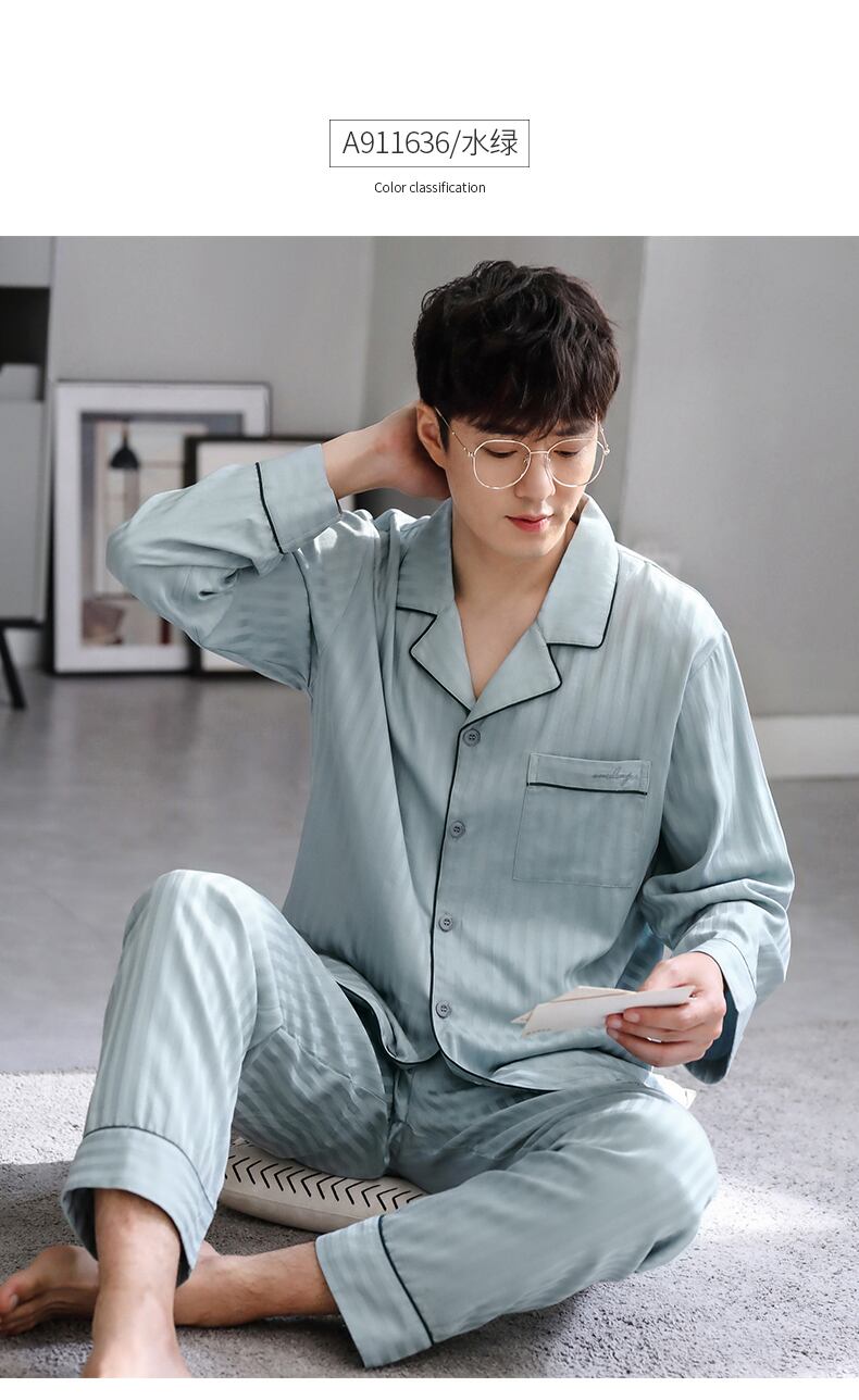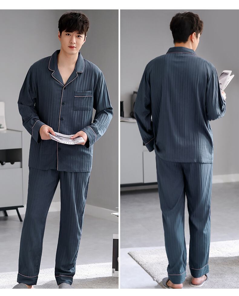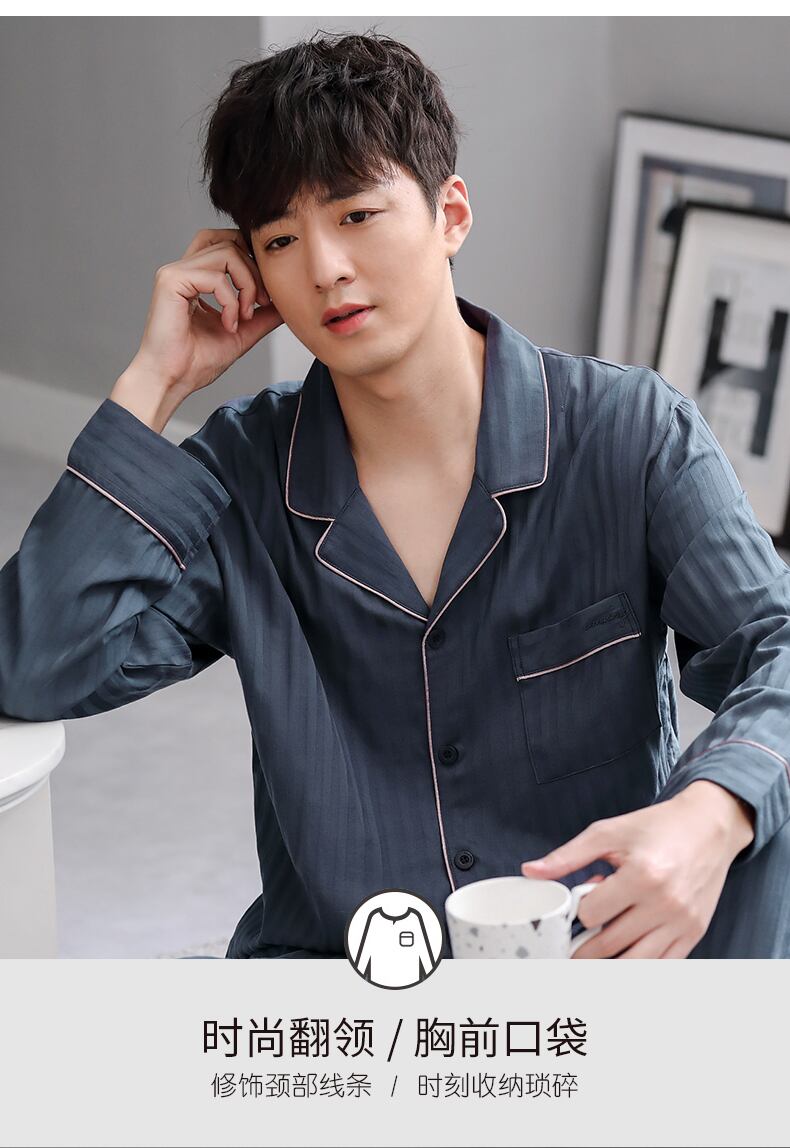 織り綿ガーゼパジャマメンズ春夏綿長袖家庭用品春秋モデル秋薄綿スーツ jial3142048886
