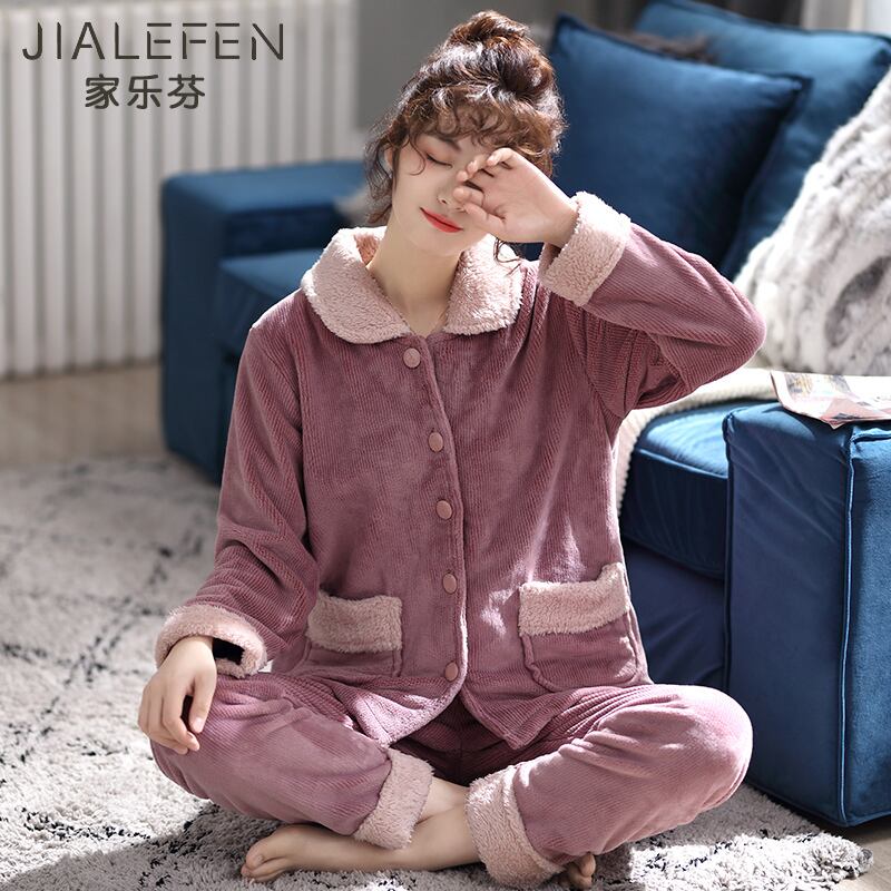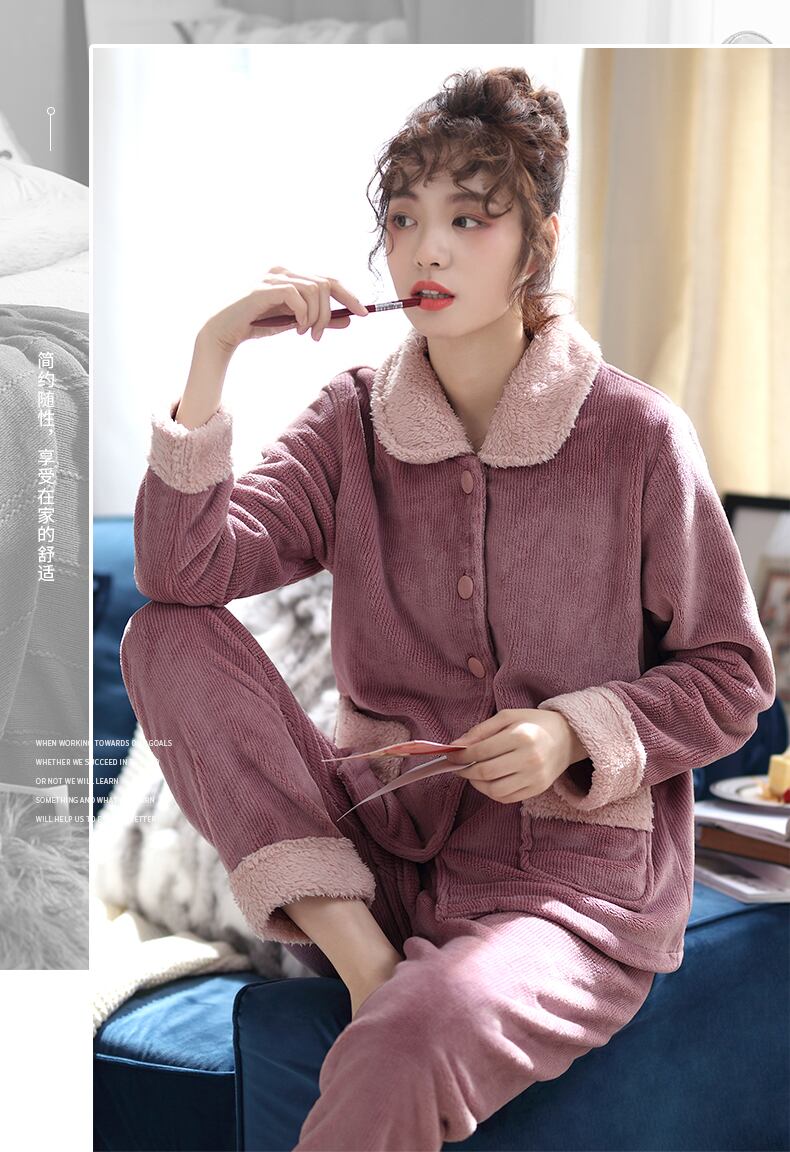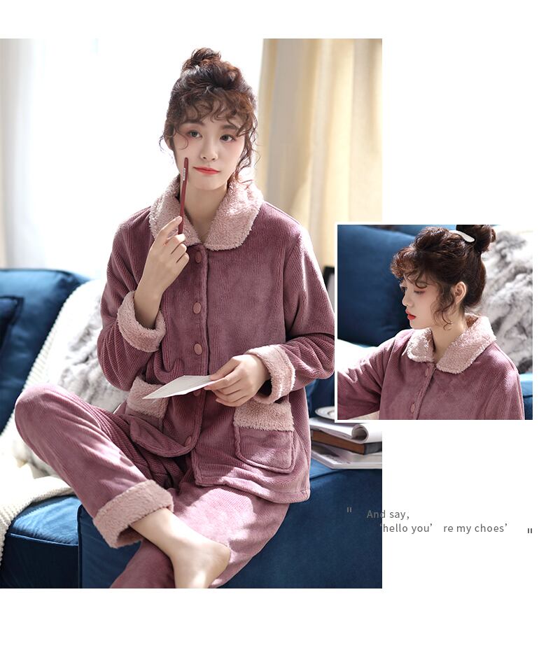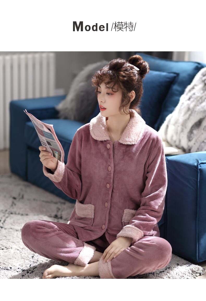 パジャマレディース秋冬モデル冬冬ホームウェアフランネル厚みとベルベットウォームコーラルフリースツーピーススーツ jial64309821754