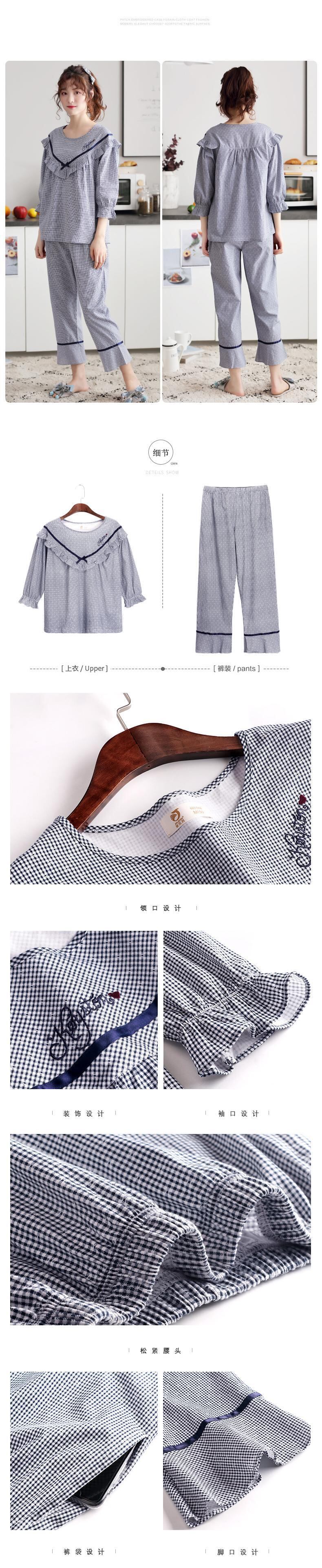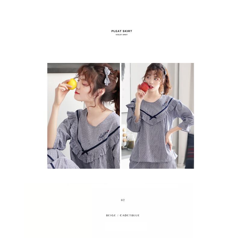 パジャマレディース春秋コットン長袖家庭着薄夏七分袖バージョンかわいいプリンセススタイルのスーツ jial67661666503