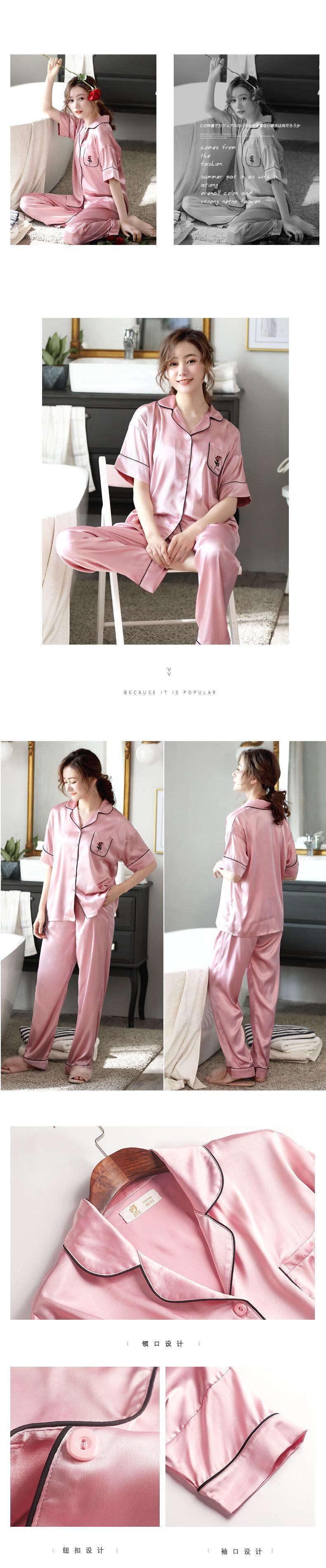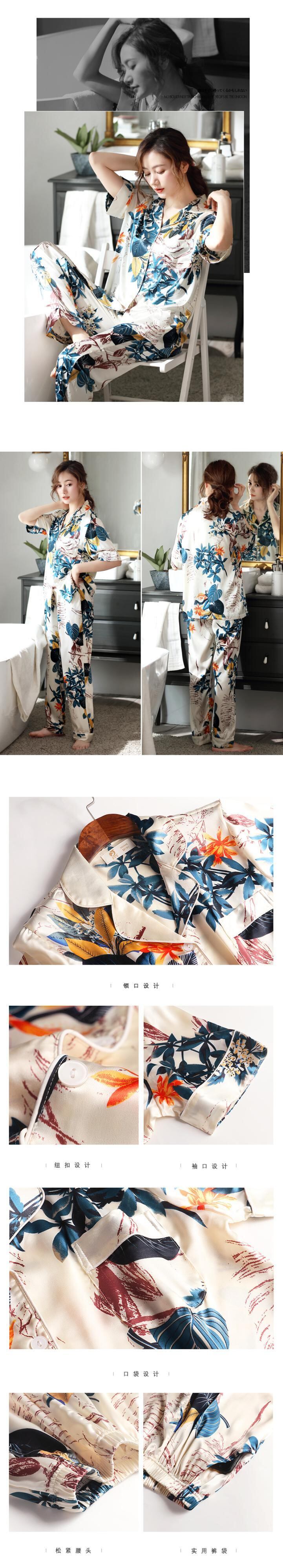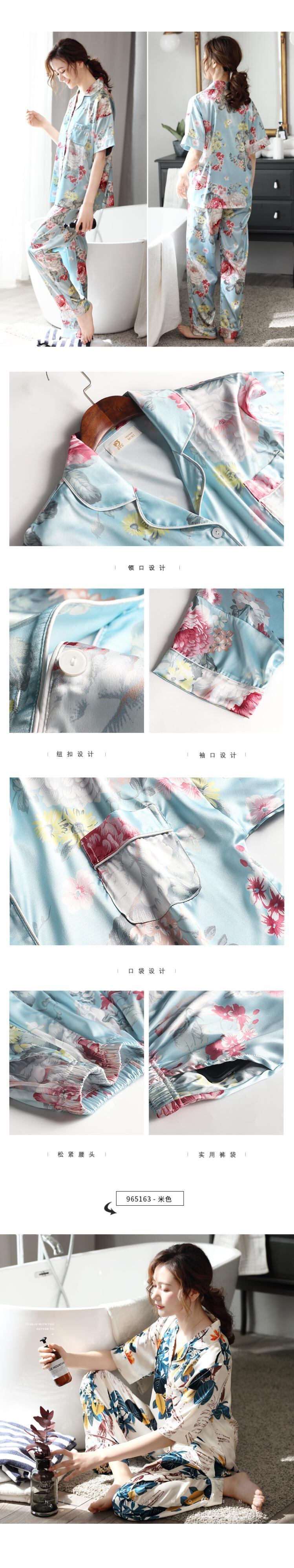 パジャマ女性夏アイスシルク半袖パンツホームサービス夏薄シミュレーションシルクバージョン母中年スーツ jial86217943047