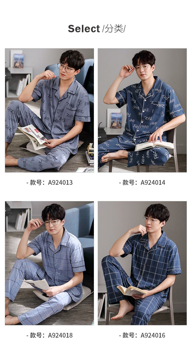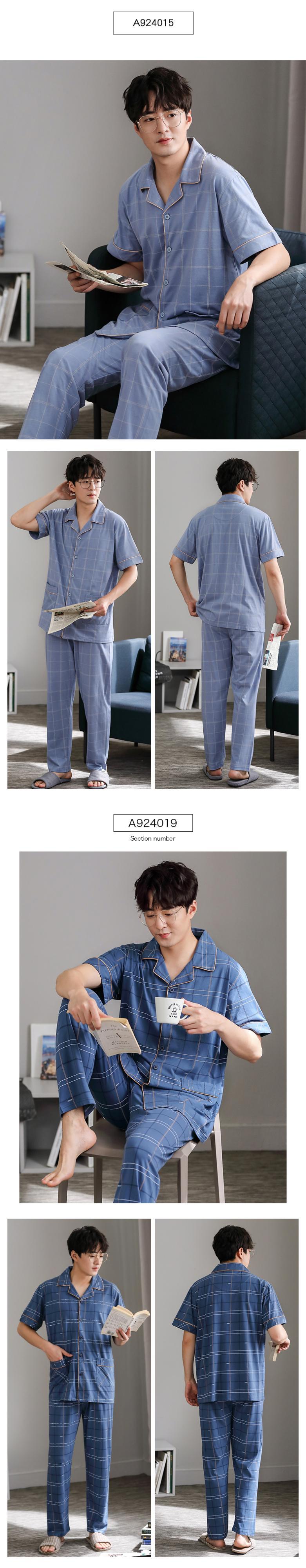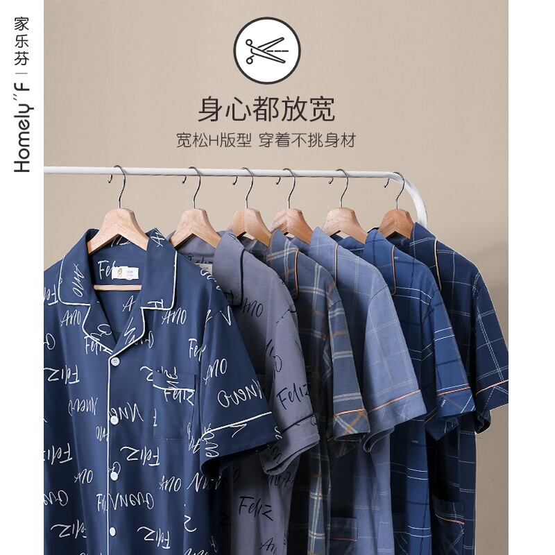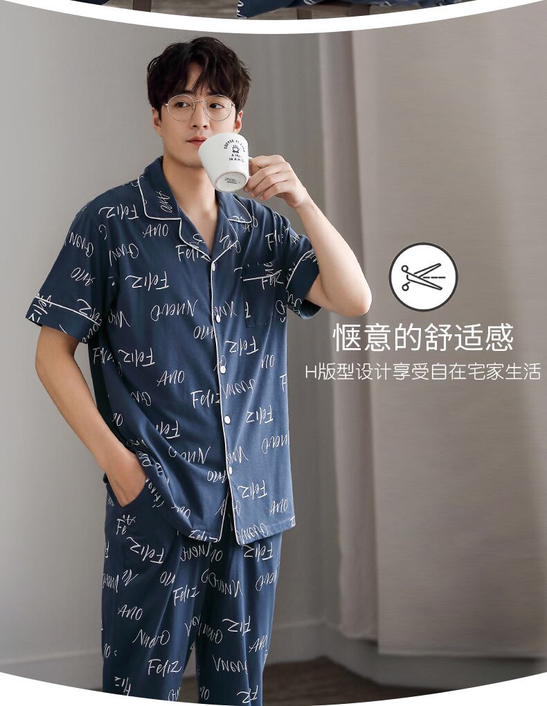 Carrefineパジャマメンズサマーコットン半袖パンツホームウェアメンズメンズサマーシンコットンスーツ jial88634336591