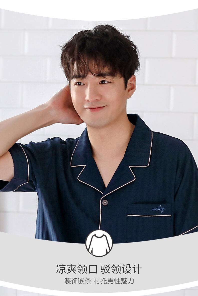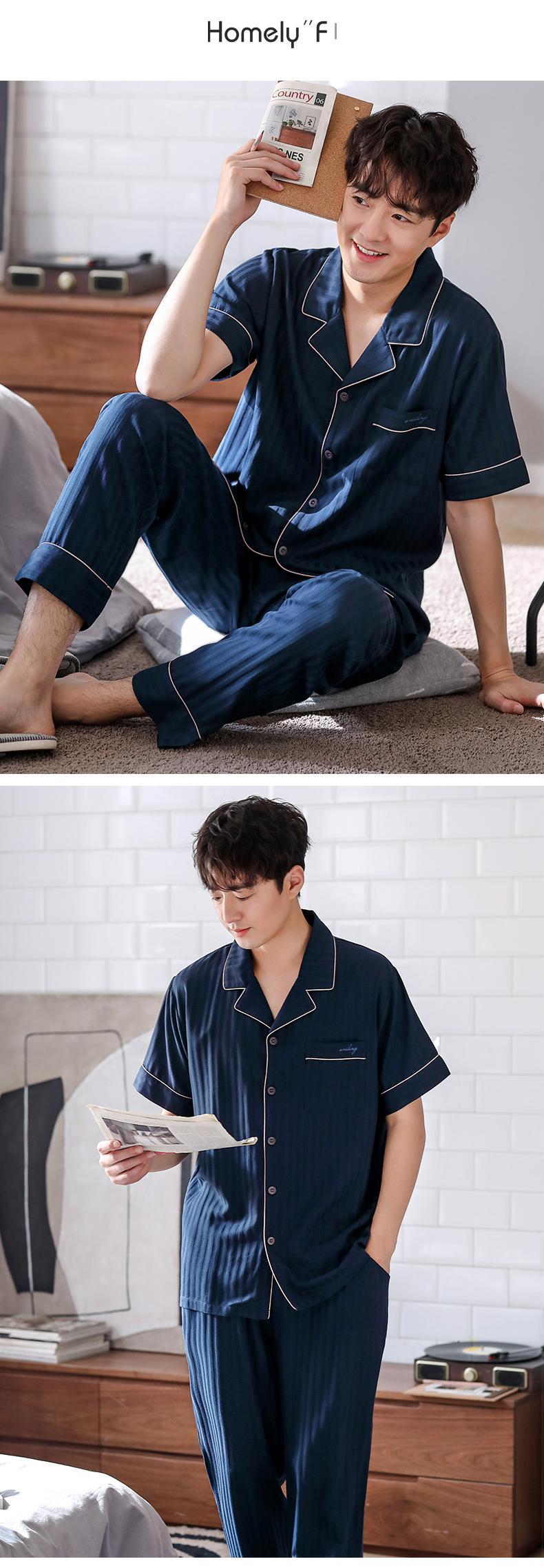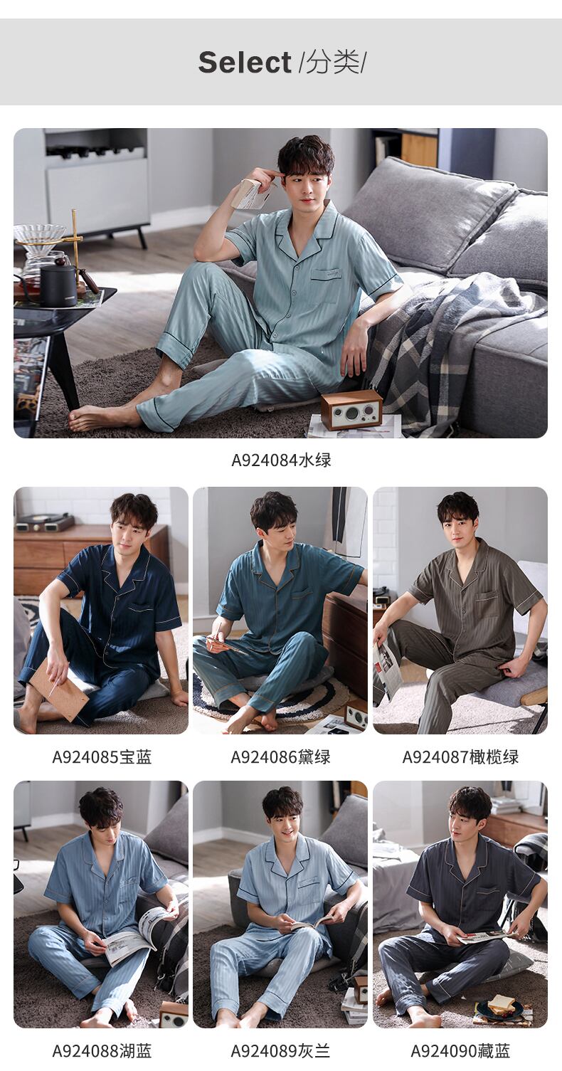 綿ガーゼパジャマメンズサマーコットン半袖パンツホームウェアサマーシンコットンカーディガンスーツ jial81071051002