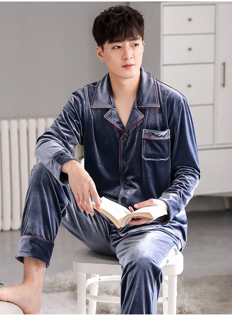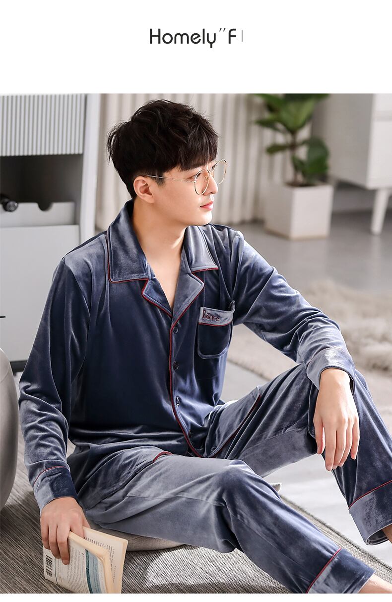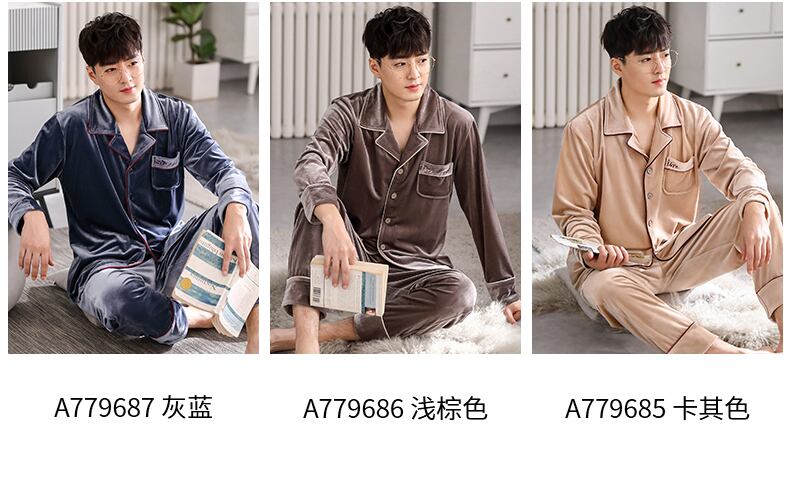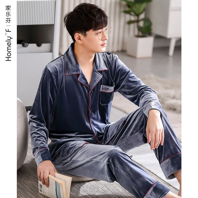 Carrefineパジャマメンズ春秋ゴールドベルベット長袖ラウンジウェアメンズ秋冬薄冬メンズスーツ jial11113173457