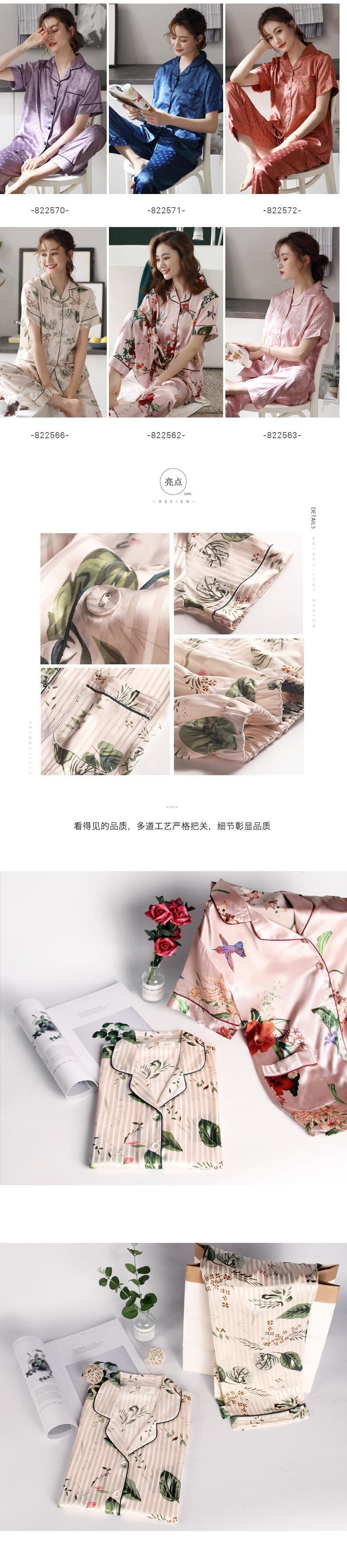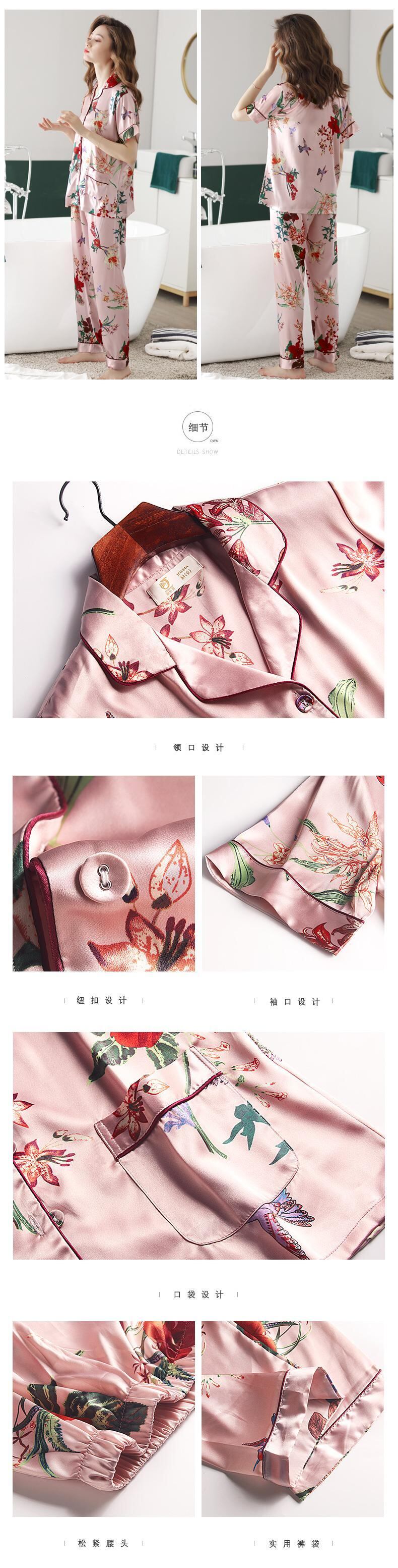 パジャマレディースサマーアイスシルク半袖家庭服夏薄シミュレーションシルクシルクサテンバージョンフローラルスーツ jial53269603843