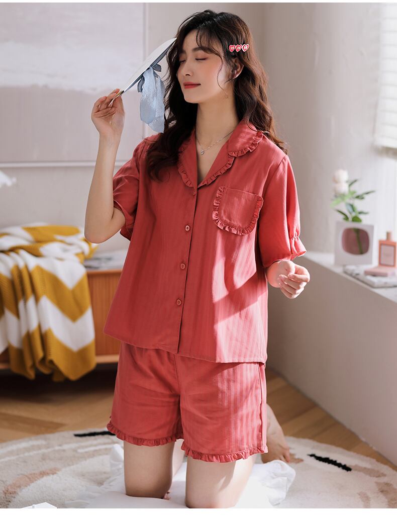 織り綿ガーゼパジャマレディース夏綿半袖ショーツホームサービス夏薄片綿高品質 jial29797362763