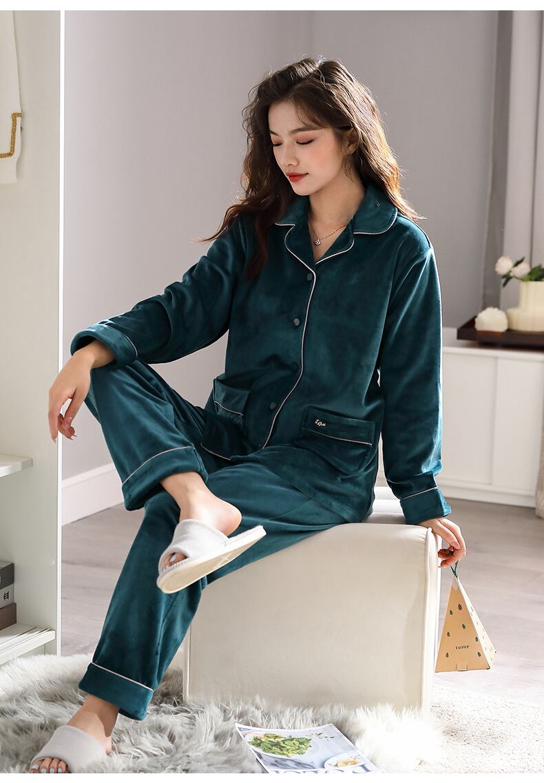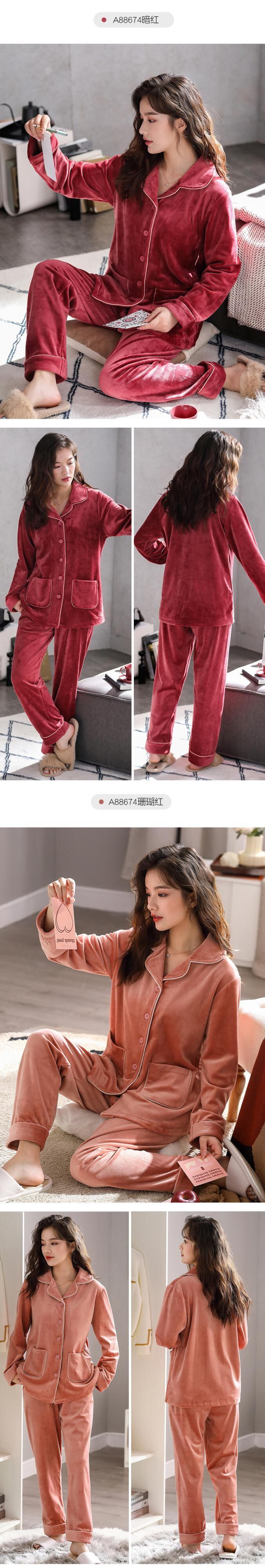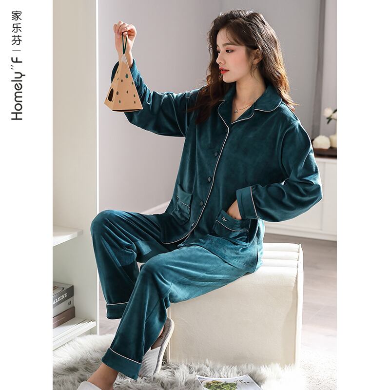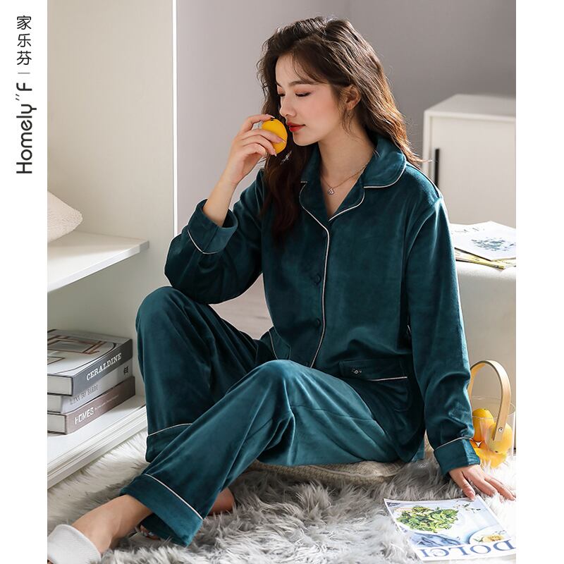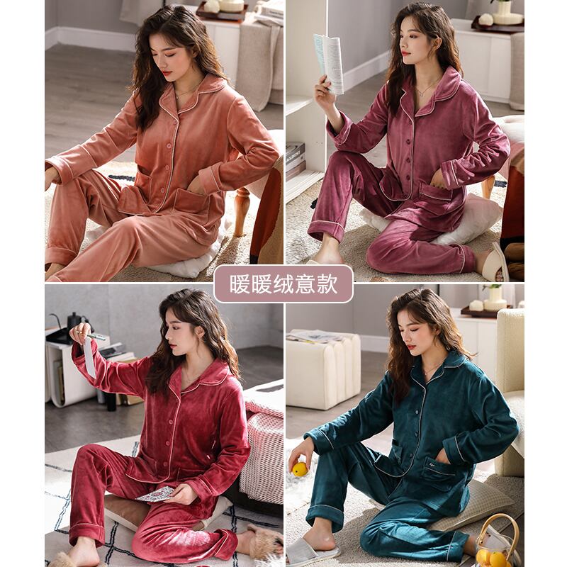 アイランドベルベットパジャマレディース秋冬冬フランネル厚手プラスベルベットコーラルベルベット春秋薄めホームウェアスーツ jial93861168918