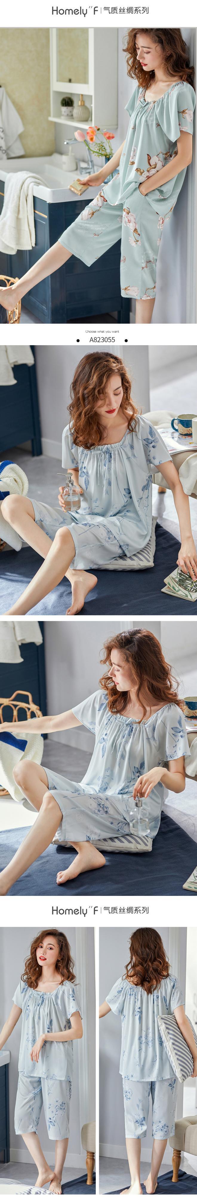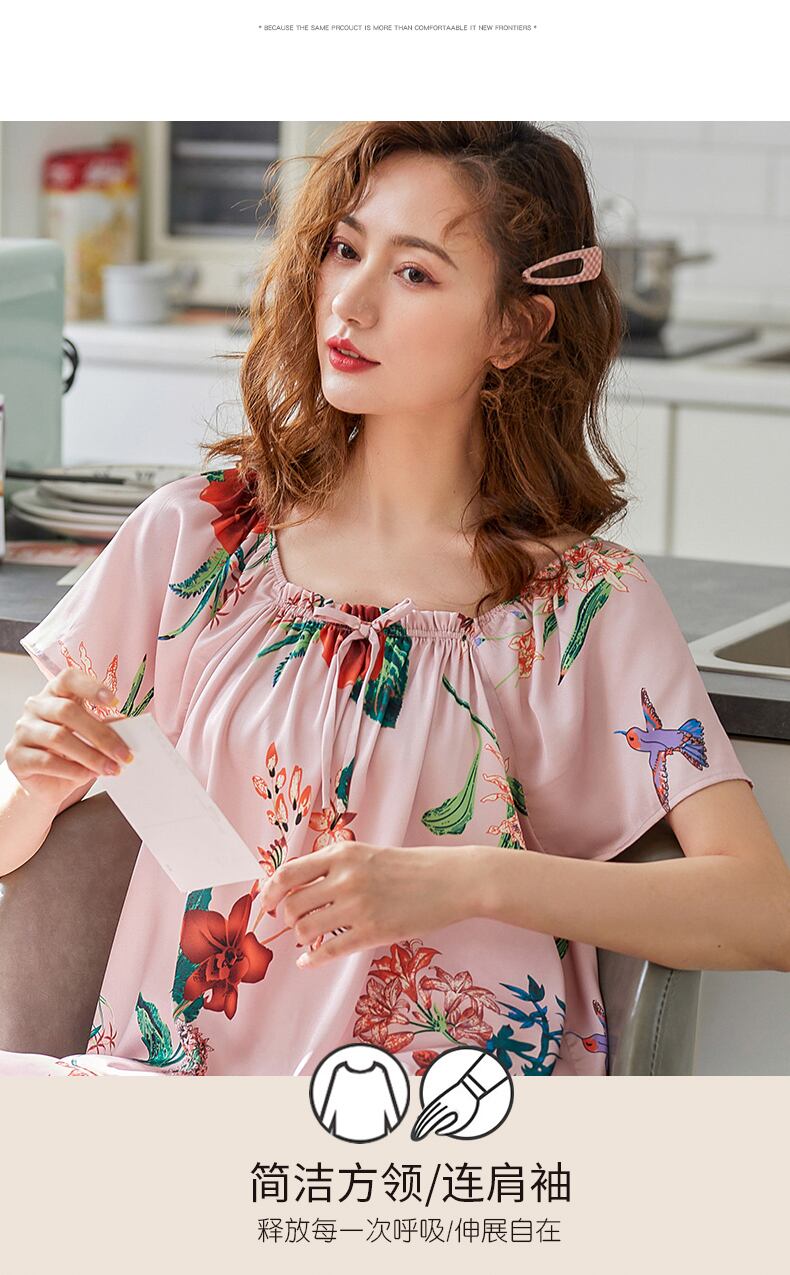 パジャマレディース夏シルクアイスシルク半袖ショーツ家庭服夏薄切り中年マザーシミュレーションシルクスーツ jial37658564031