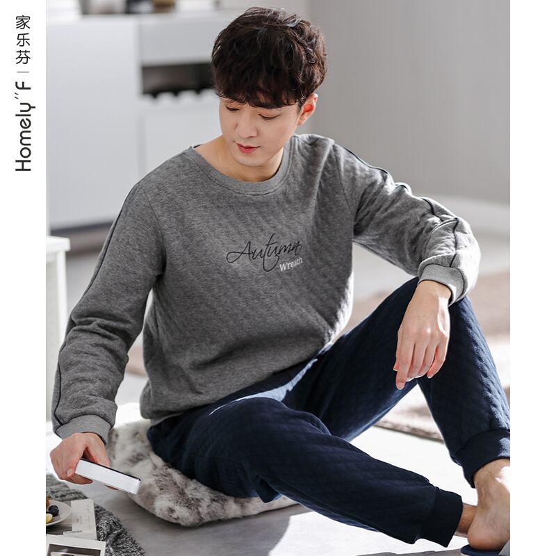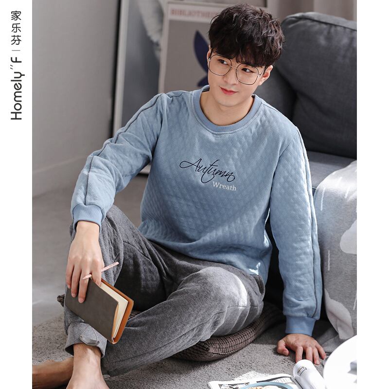 パジャマメンズ春秋厚手コットン長袖家庭服コットンエアコットン中間層キルティング秋冬モデル jial296962359