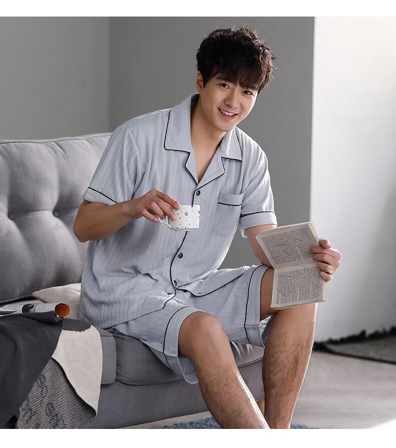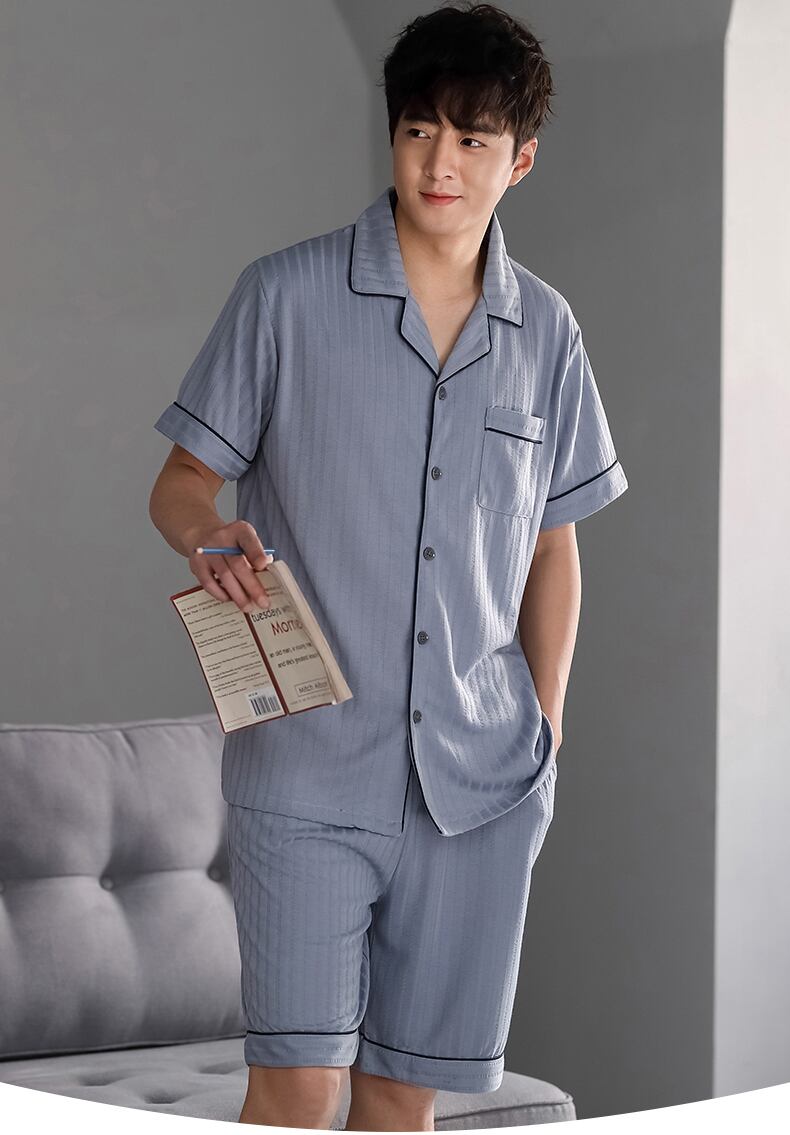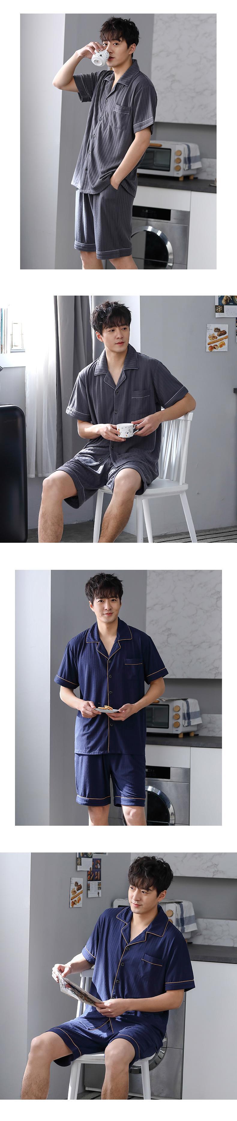 パジャマメンズサマーコットン半袖ショーツカーディガンホームウェアメンズサマーシンコットンプラスサイズスーツ jial48692923525
