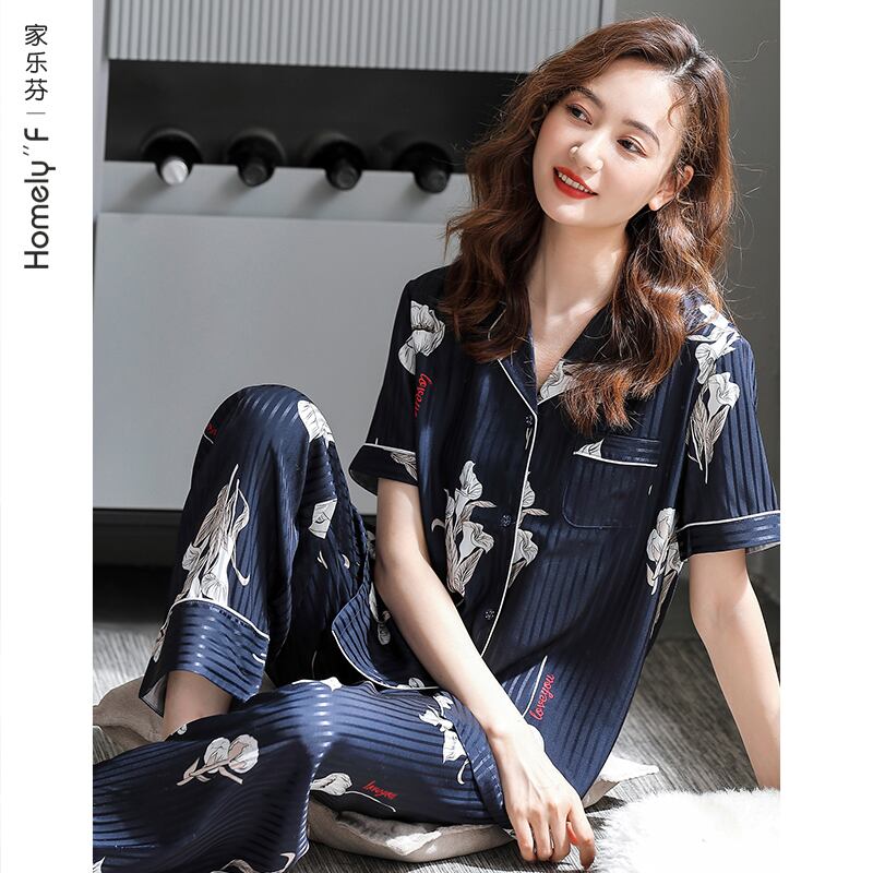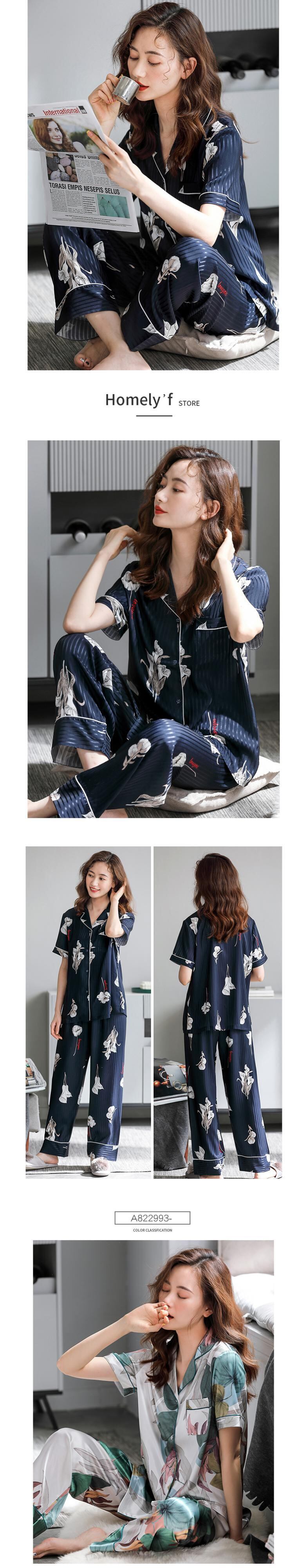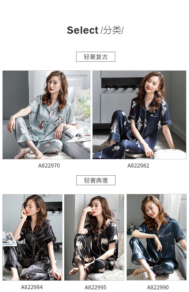 パジャマレディースサマーシルクアイスシルク半袖パンツホームウェアサマーシンイミテーションシルク中年マザースーツ jial61005426951