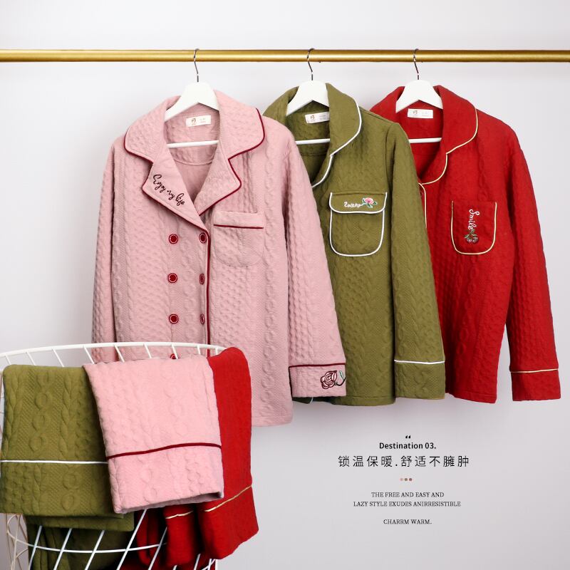 パジャマレディース春秋風秋厚手コットン長袖家庭服綿秋冬風冬暖かいキルティング薄手 jial11115778964
