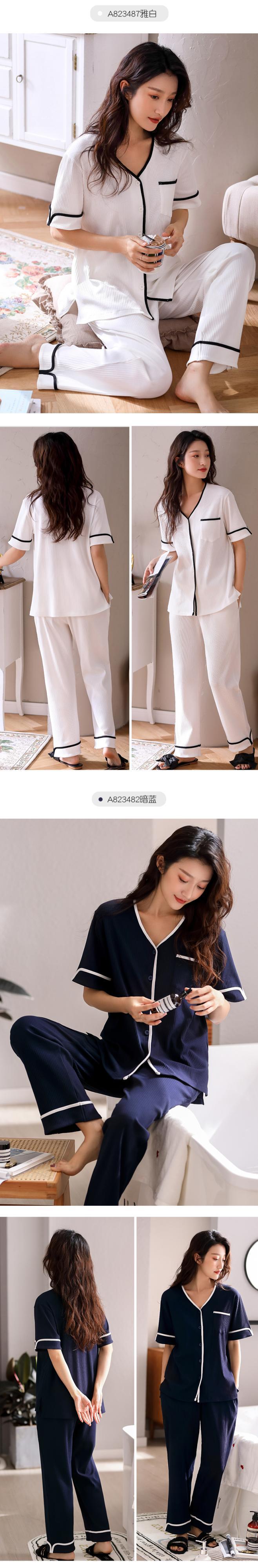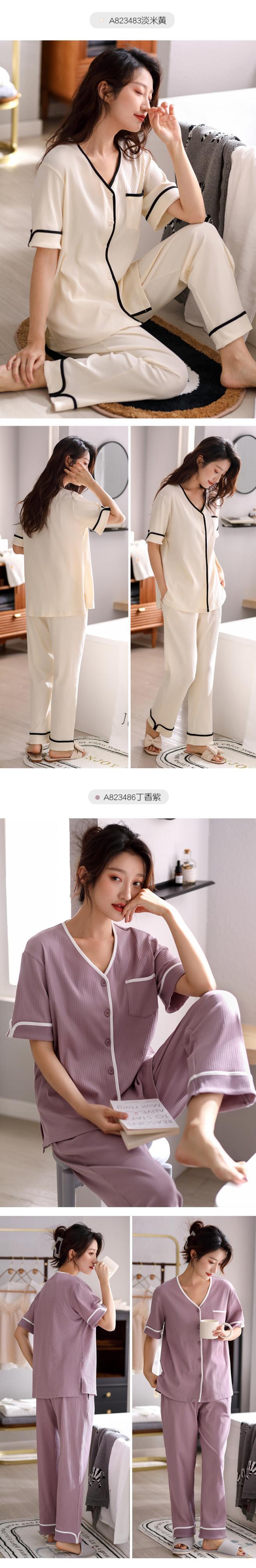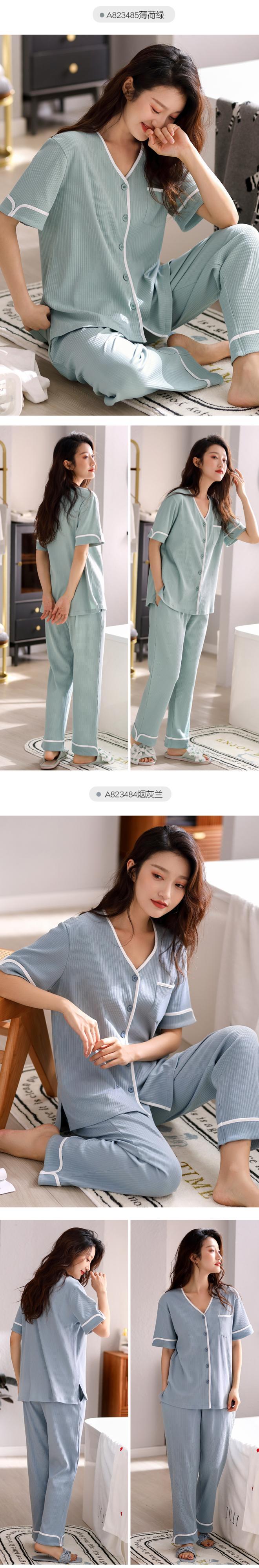 2021年新作パジャマレディース夏半袖パンツ家庭服夏薄片高品質ツーピーススーツ jial84996014301