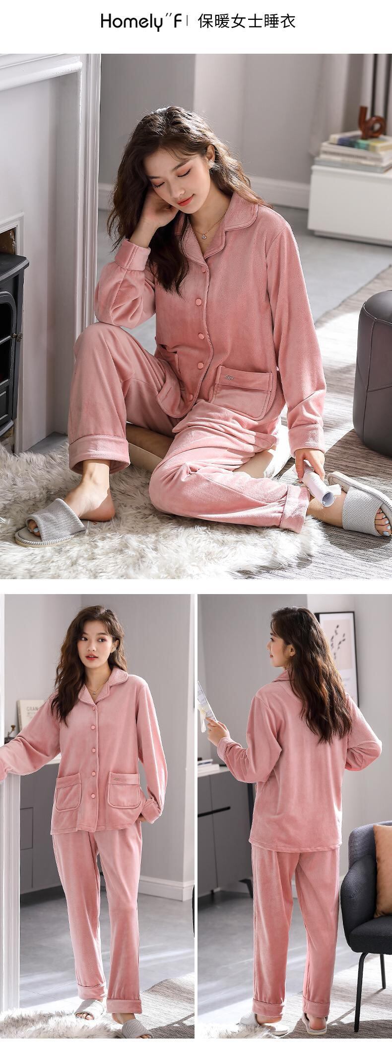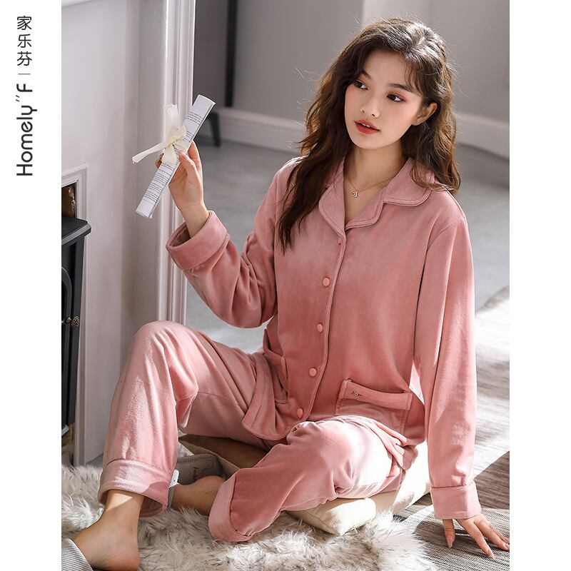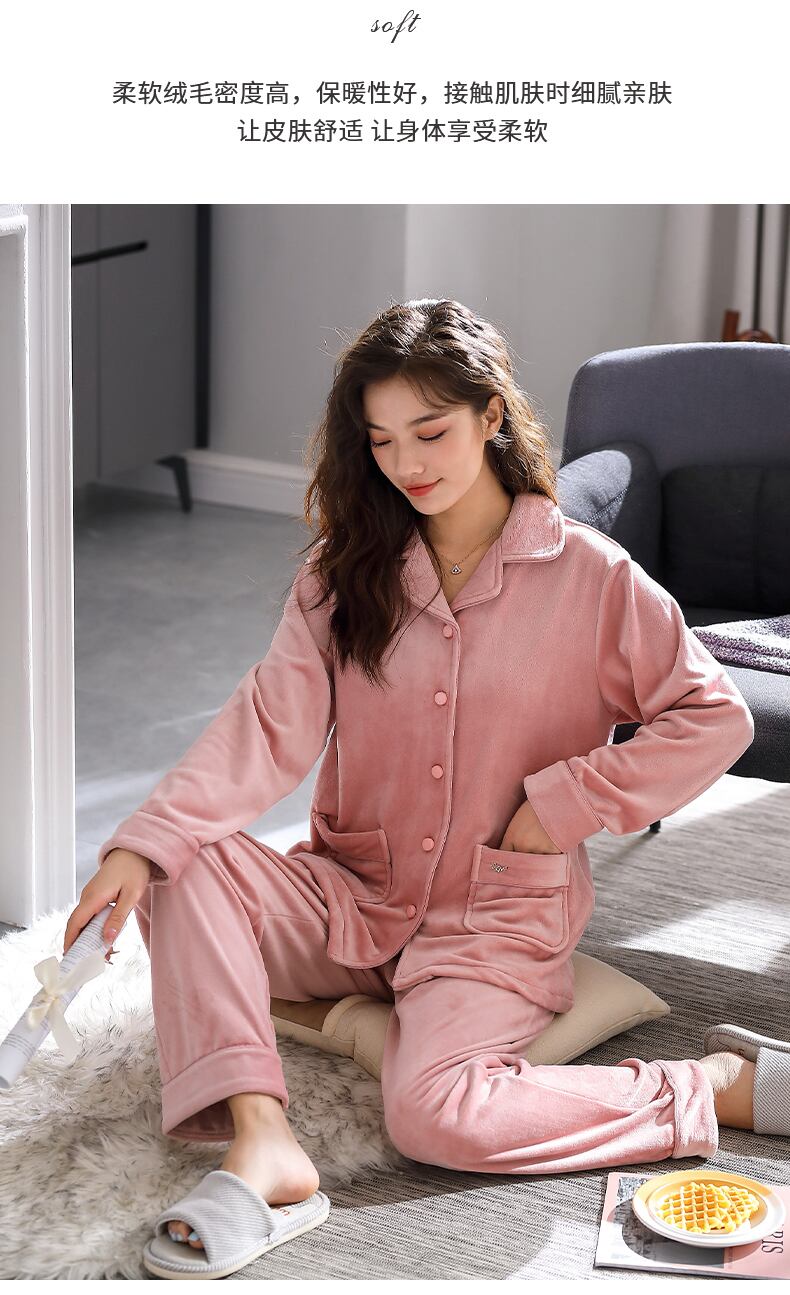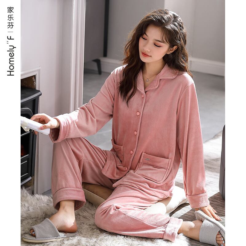 アイランドベルベットパジャマレディース秋冬冬フランネル厚手プラスベルベットコーラルベルベット春秋薄めホームウェアスーツ jial22688627987