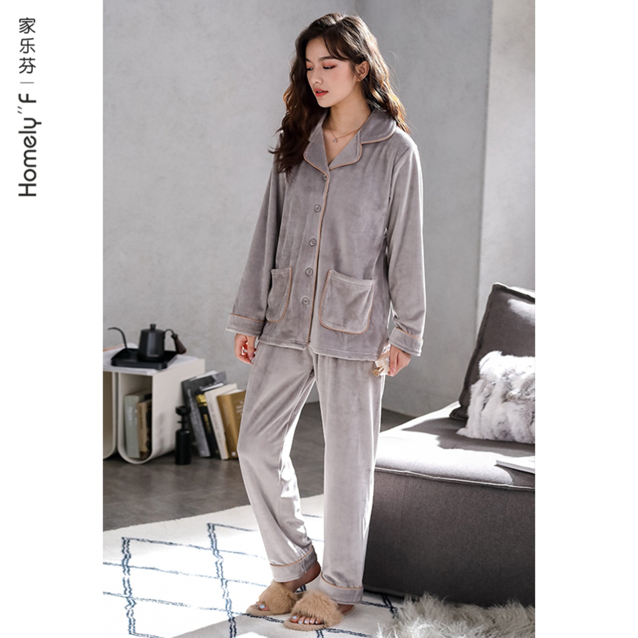 アイランドベルベットパジャマレディース秋冬モデル冬サンゴベルベット肥厚とベルベットフランネル家庭服春秋薄手モデル jial93147483992