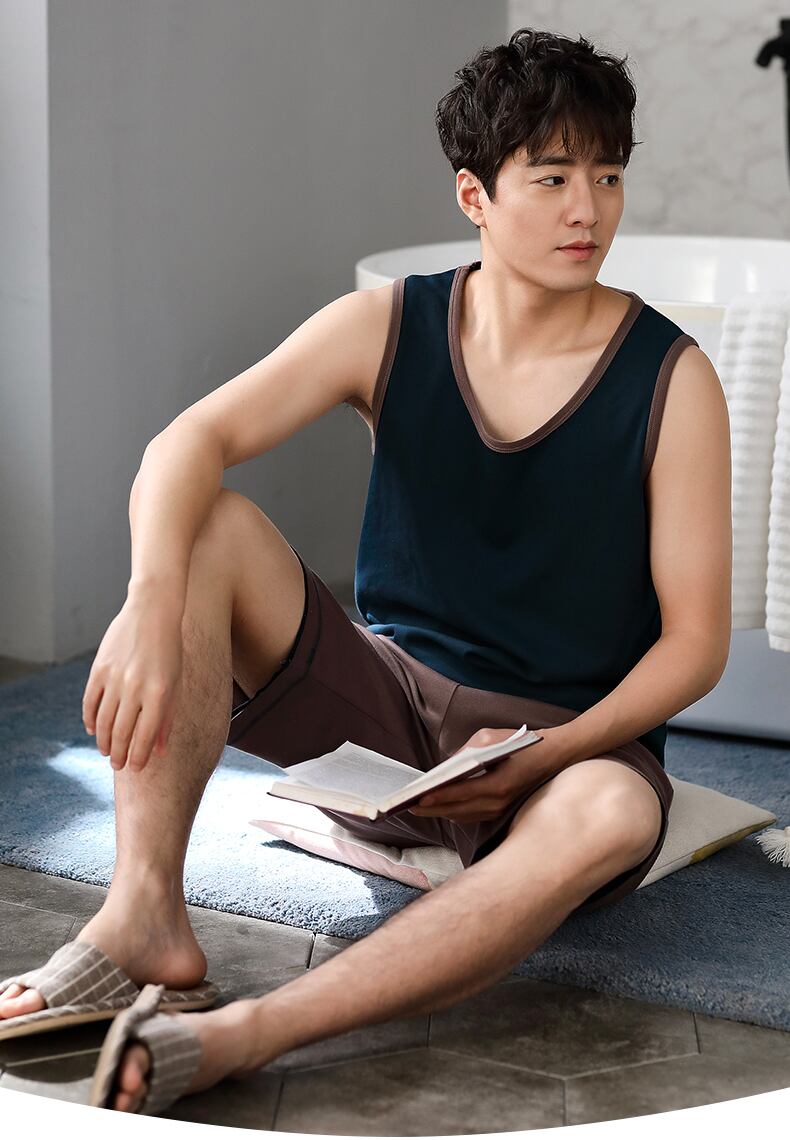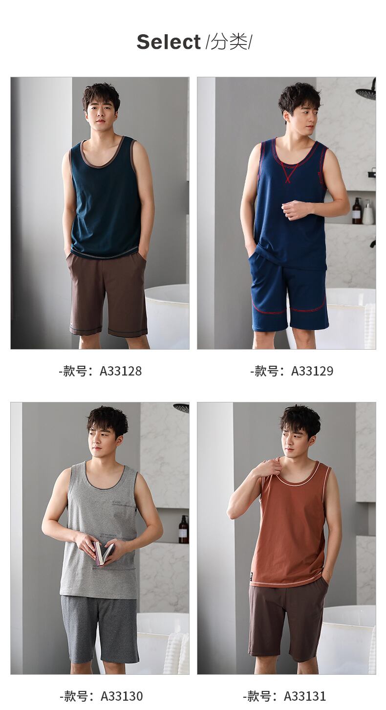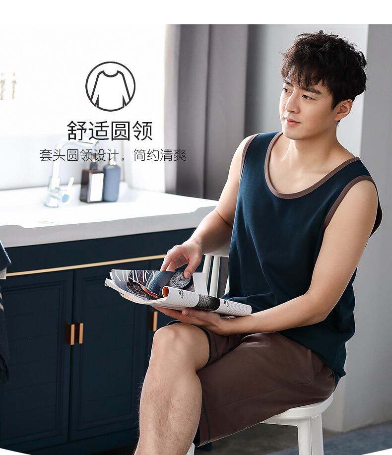 Carrefineパジャマメンズサマーコットンベストノースリーブショーツホームウェアメンズサマーシンコットンスーツ jial33755558028