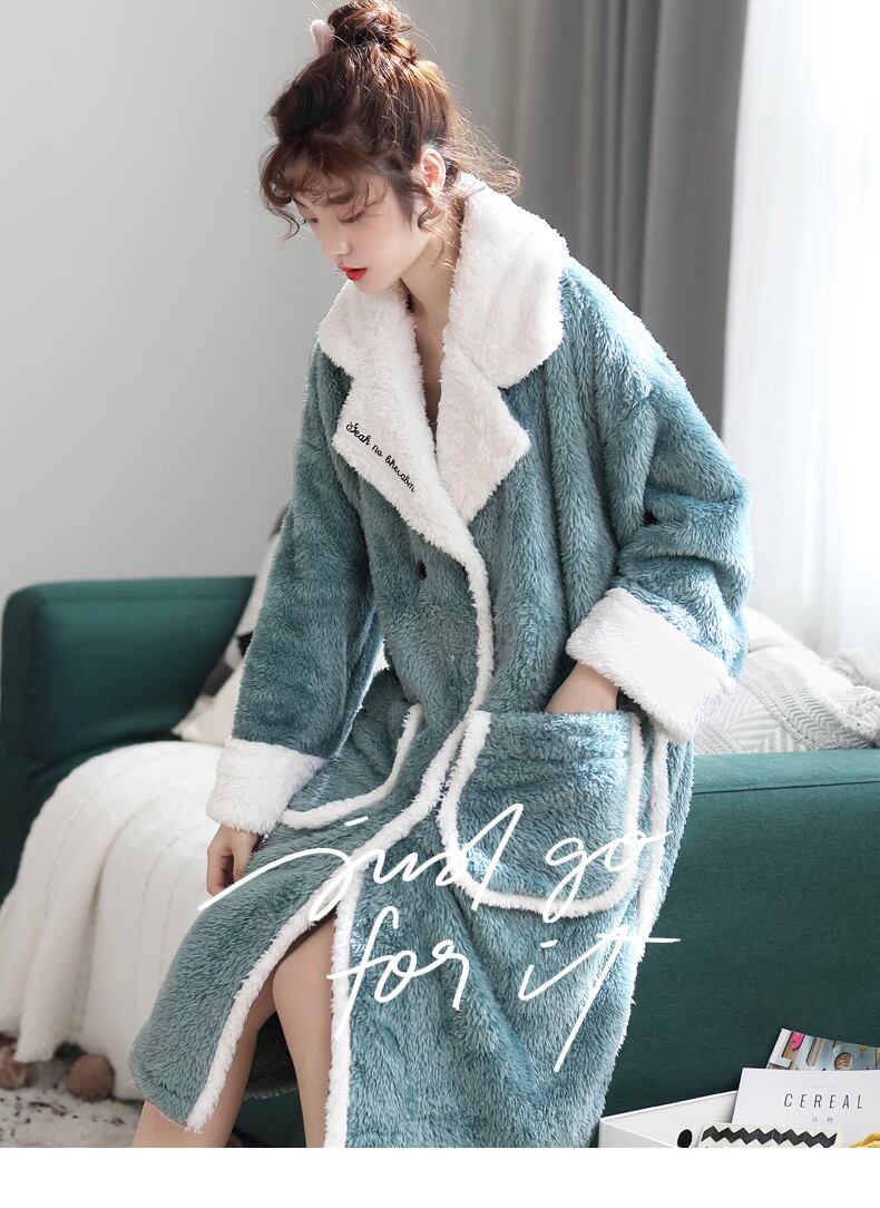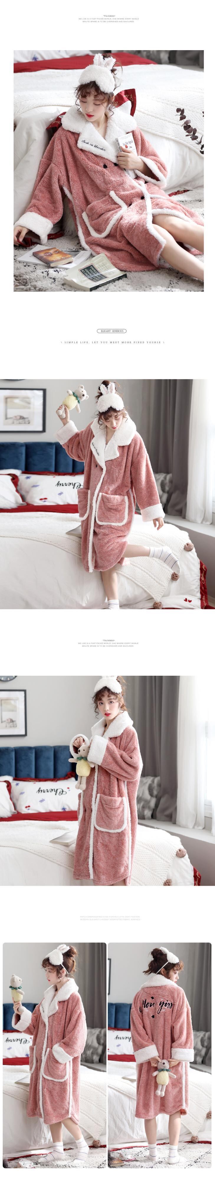 パジャマ女性の秋と冬の珊瑚フリースネグリジェフランネルネグリジェ学生寮厚くプラスベルベット暖かい長いバスローブ jial24867593305
