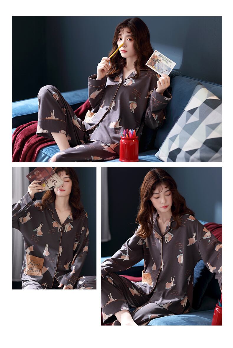 パジャマレディース春と秋の綿長袖家庭服綿秋と冬バージョン漫画かわいい甘いスーツ jial13229738090