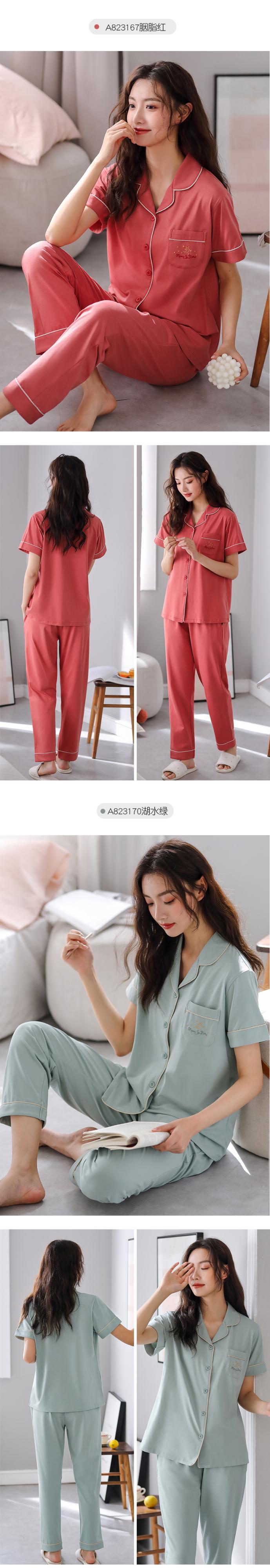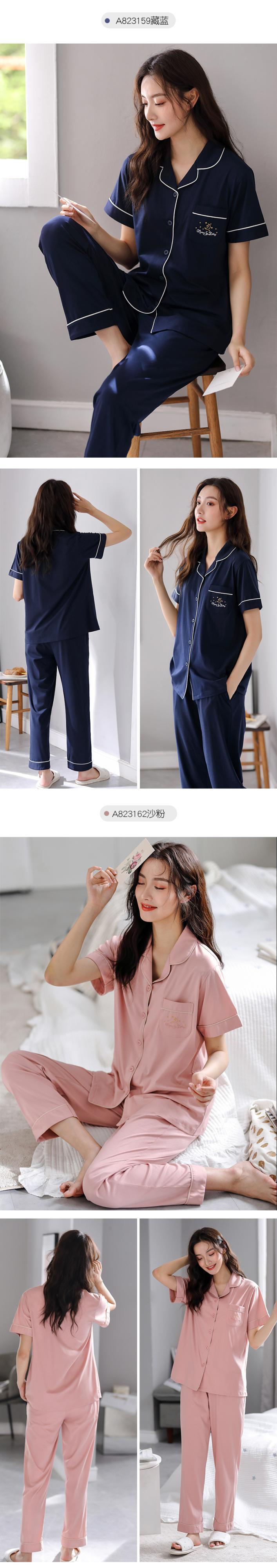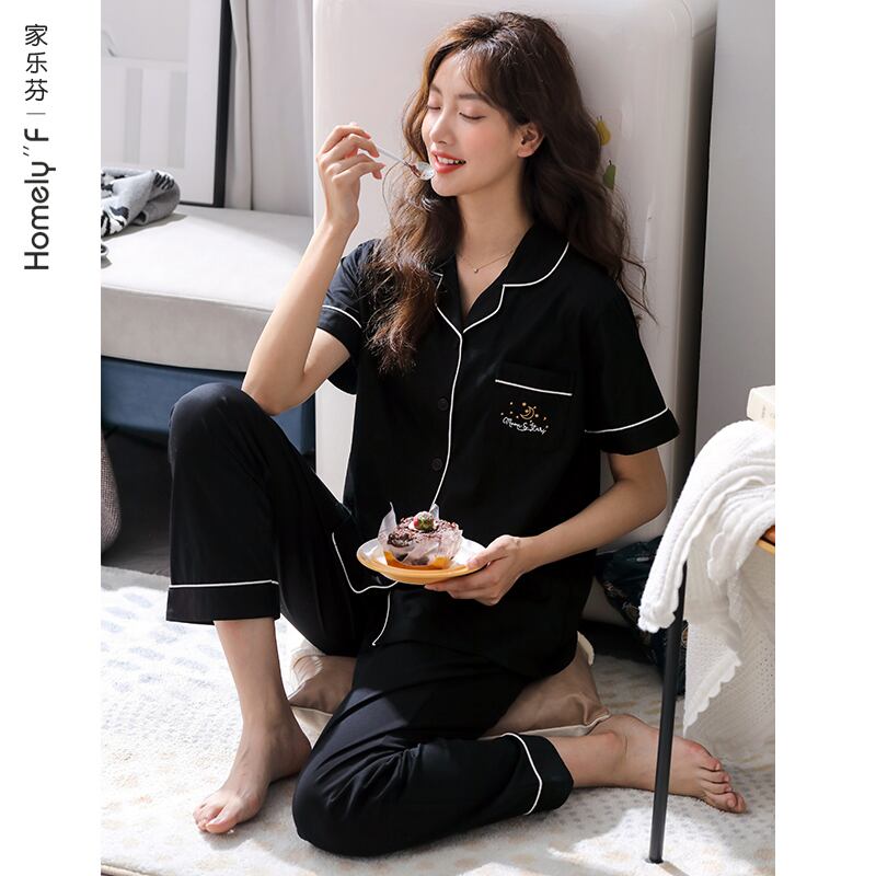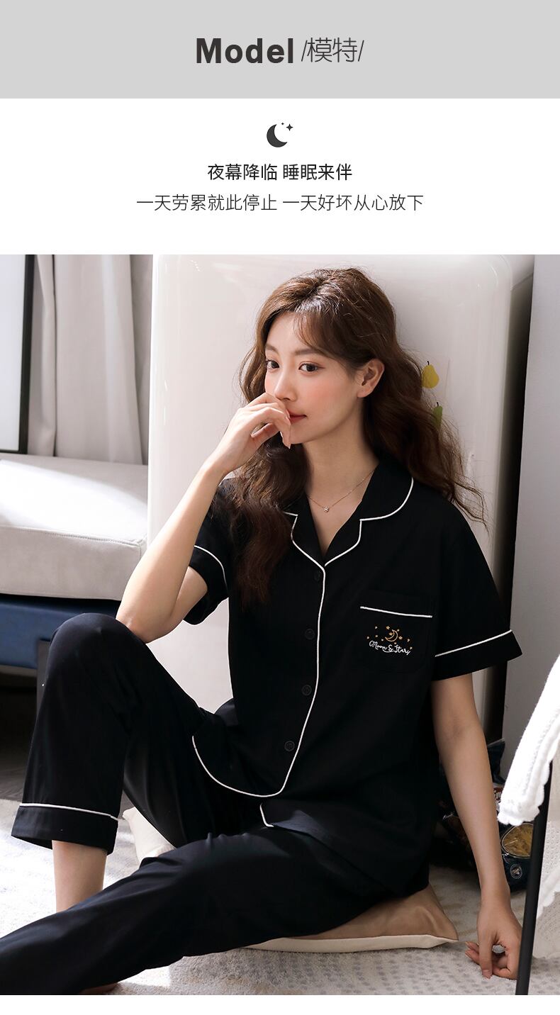 パジャマサマーコットン半袖パンツホームウェアサマーシンコットンブラックプラスサイズツーピーススーツ jial47746061723
