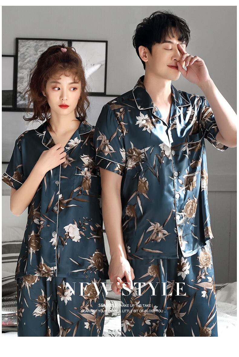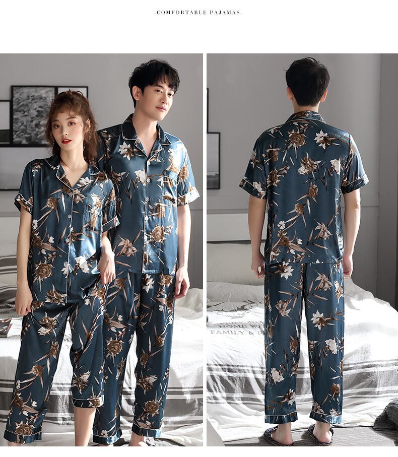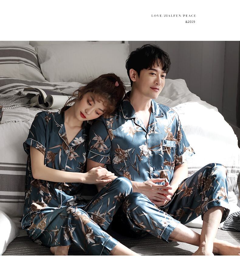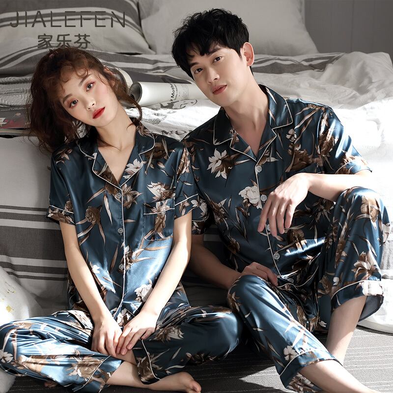 カップルパジャマメンズサマーアイスシルク半袖パンツホームサービスレディースバージョンスーツサマーシンシミュレーションシルク jial96187291823