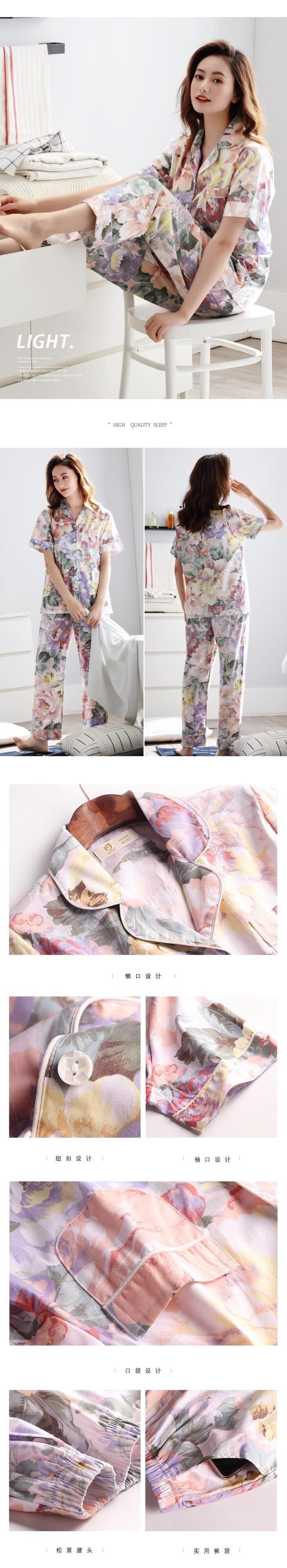 パジャマサマーコットン半袖パンツホームウェアサマーシンウーブンコットンコットンミドルエイジドママラージサイズ jial35815271939